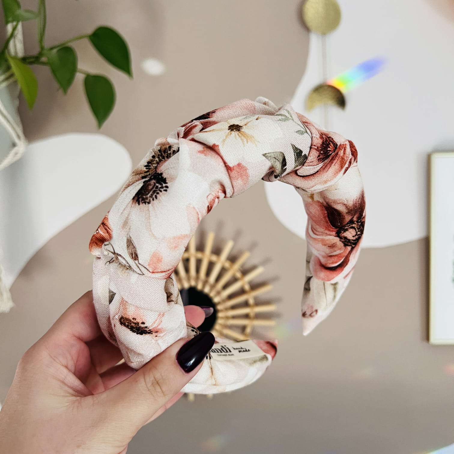 W środku kryje się miękka pianka, która sprawia, że opaska jest lekka, elastyczna i ma piękny, pełny kształt – nie jest płaska, lecz delikatnie uniesiona, co dodaje jej objętości i wyjątkowego charakteru. Jest praktycznie niewyczuwalna na głowie, nie uciska i nie powoduje bólu, a jednocześnie doskonale trzyma się na miejscu, nie zsuwając się podczas noszenia.