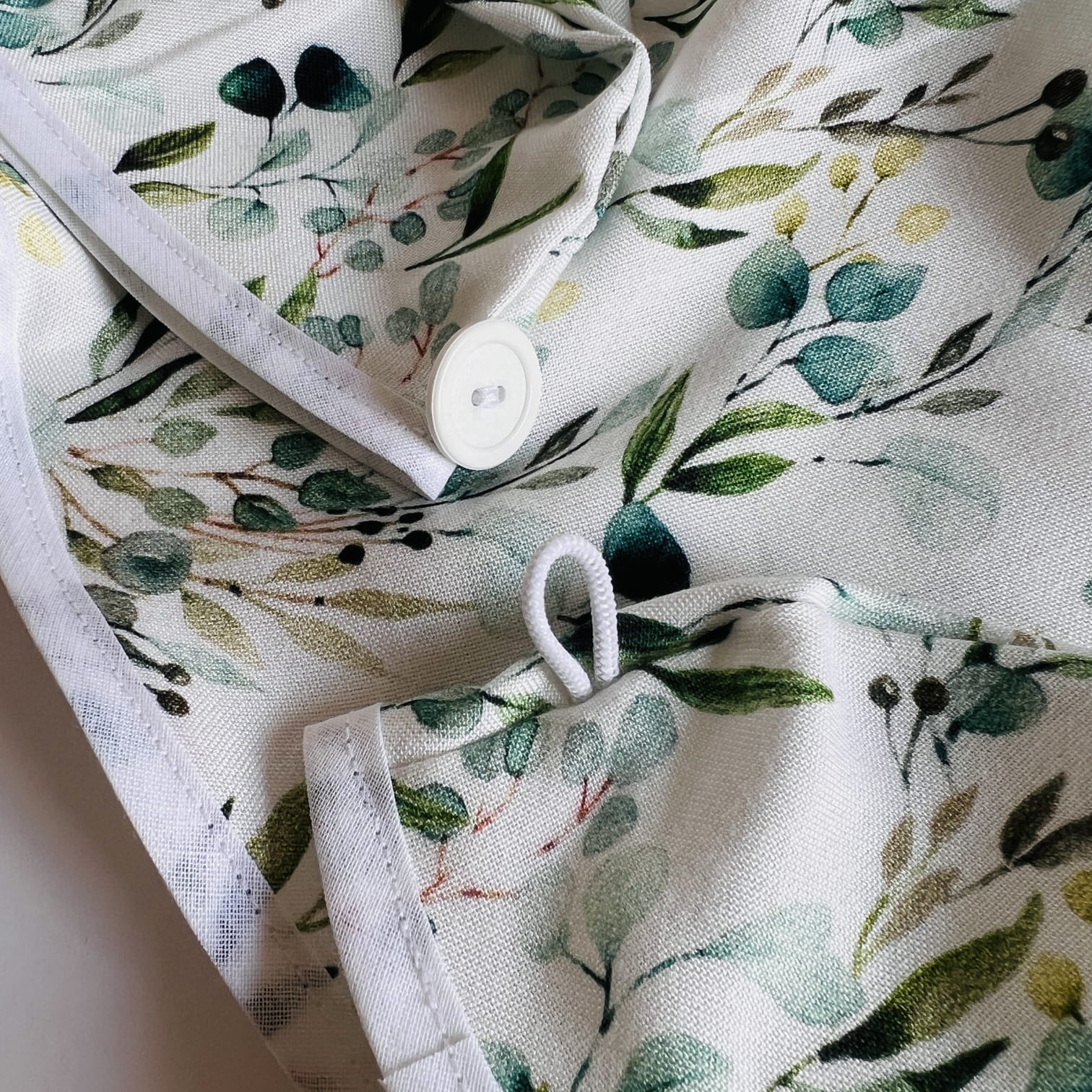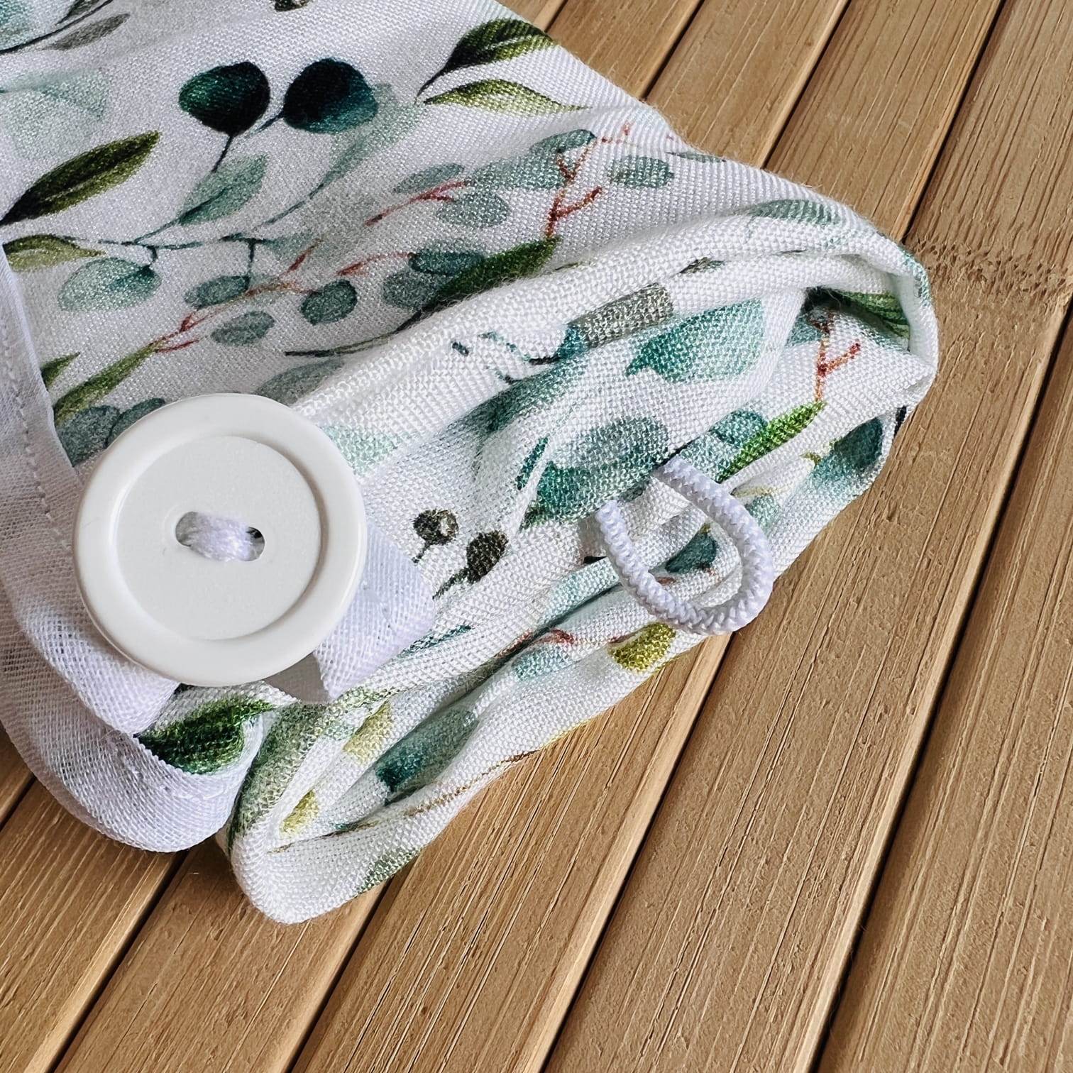 Turban do włosów we wzorze Eucalyptus to niezbędnik każdej prawdziwej włosomaniaczki! Został wykonany z wysokiej jakości wiskozy bambusowej polskiej produkcji i obszyty bawełnianą lamówką w kolorze białym. Dzięki gumowej pętelce na jednym z końców i guzikowi na drugim masz możliwość regulacji obwodu turbanu, co sprawi, że będzie idealnie dopasowany. Dzięki niemu szybko wysuszysz włosy, a także zadbasz o ich kondycję.