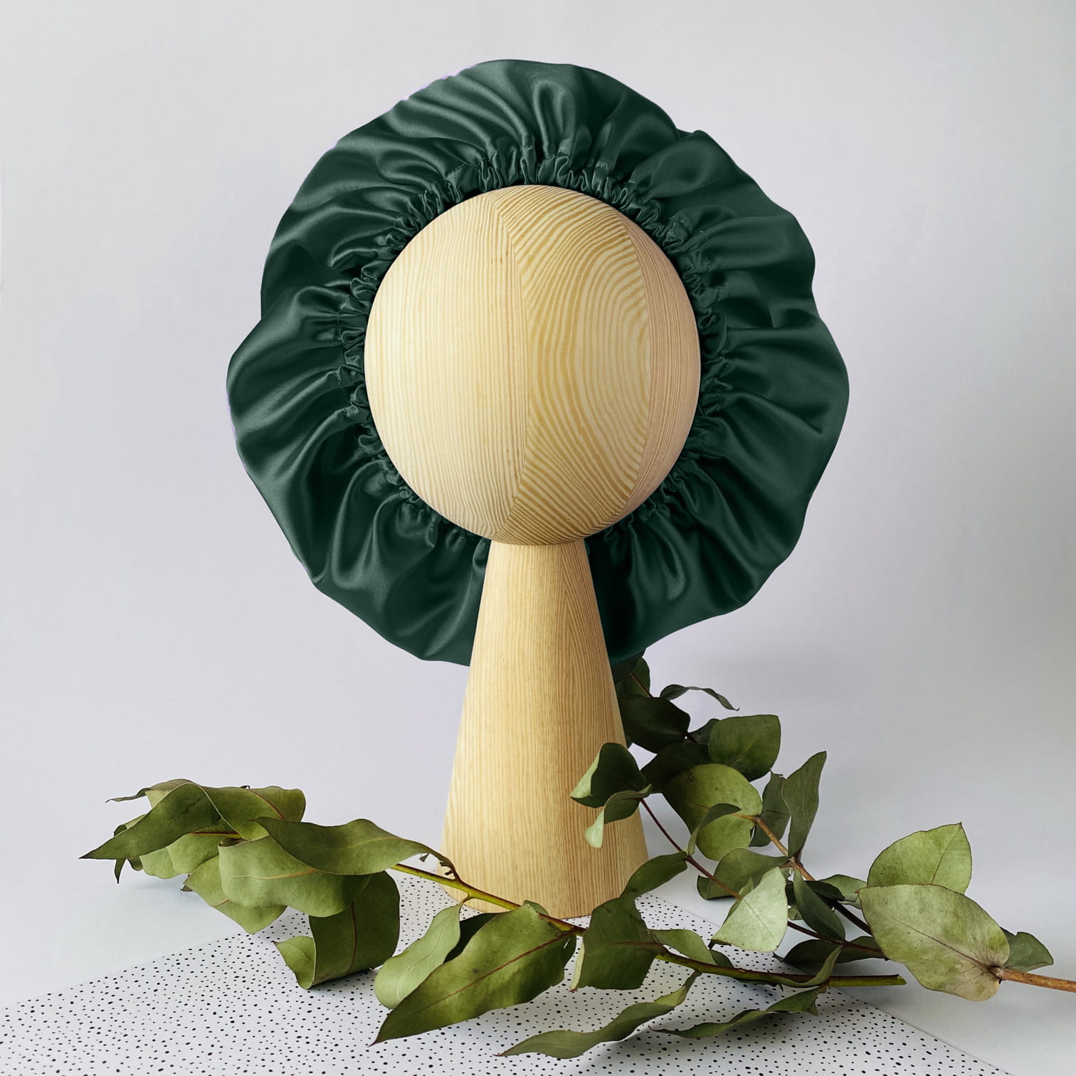 Jedwabny satynowy czepek do włosów Zielony butelkowy