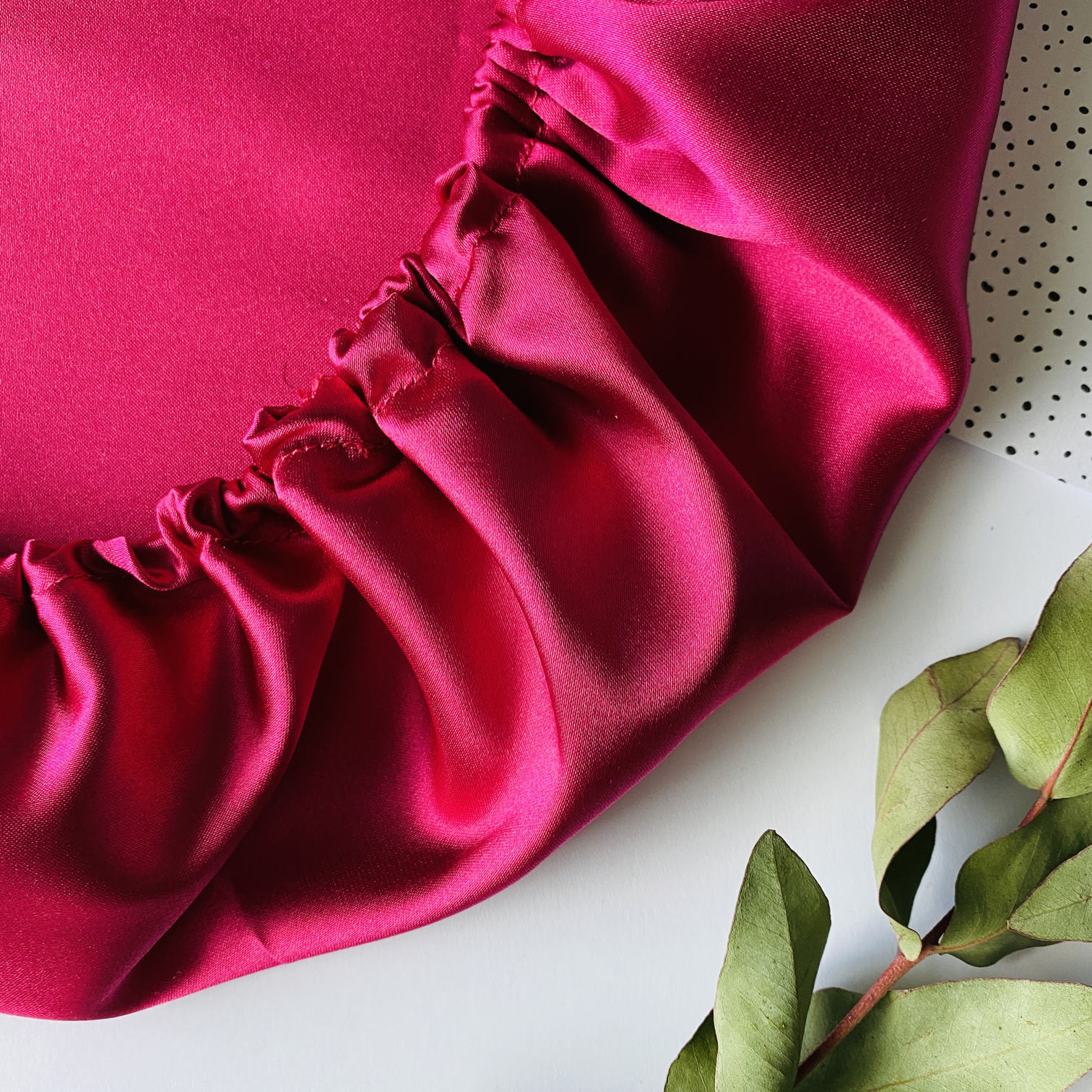 Satynowy czepek chroniący włosy przed plątaniem, łamaniem i przed puszeniem powodowanym tarciem o poduszkę w nocy.