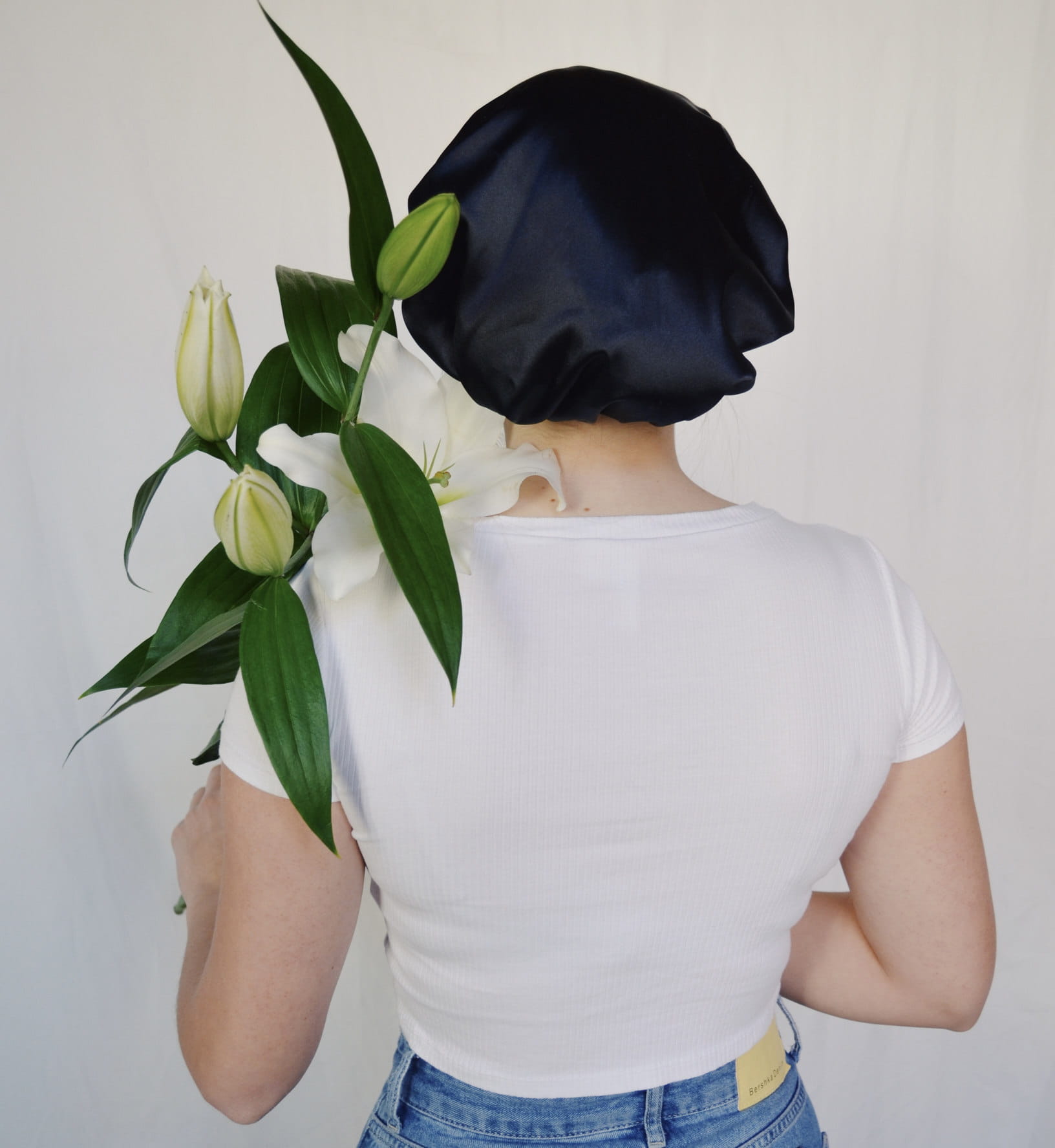 Satynowy czepek chroniący włosy przed plątaniem, łamaniem i przed puszeniem powodowanym tarciem o poduszkę w nocy.