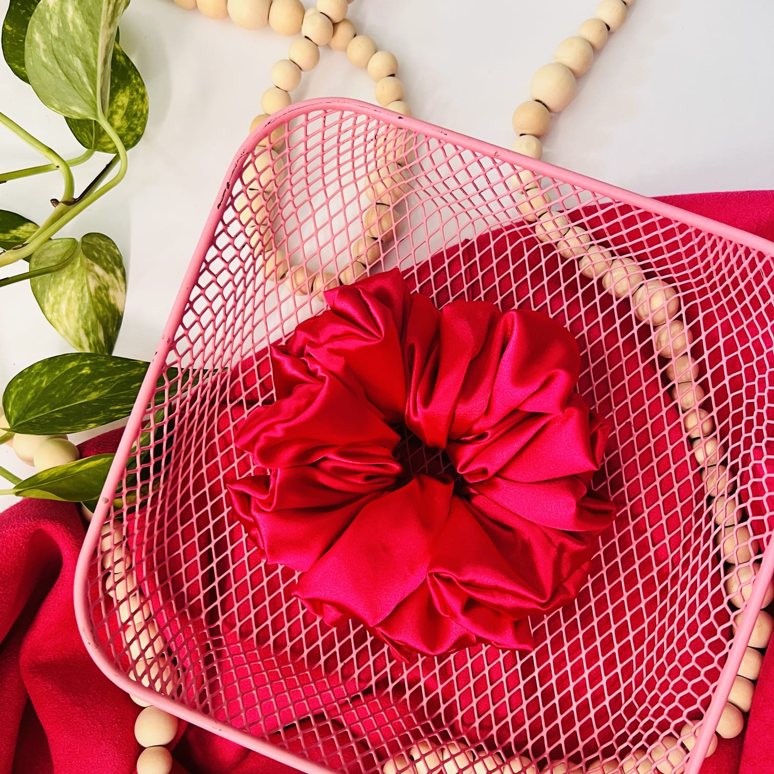 Satynowa gumka do włosów scrunchie XXL Fuksja