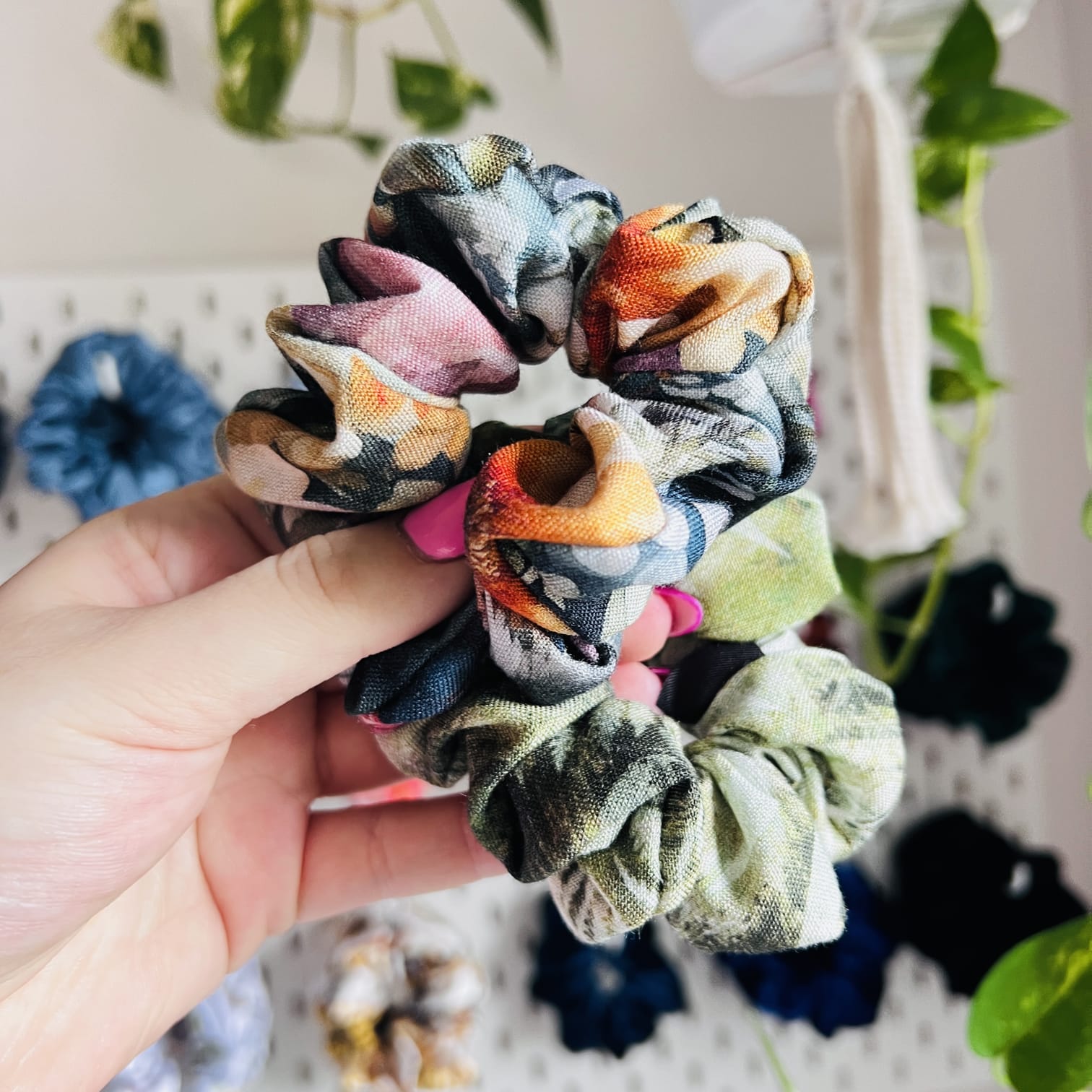Gumkę do włosów scrunchie w tym cudnym wzorze stworzyłam własnoręcznie dbając o wszelkie detale i z najlepszej jakości wiskozy bambusowej. Delikatna tkanina nie szarpie włosów, nie łamie ich i nie wyrywają, a jednocześnie pozwalają Ci utrzymać wybraną fryzurę w ładzie.