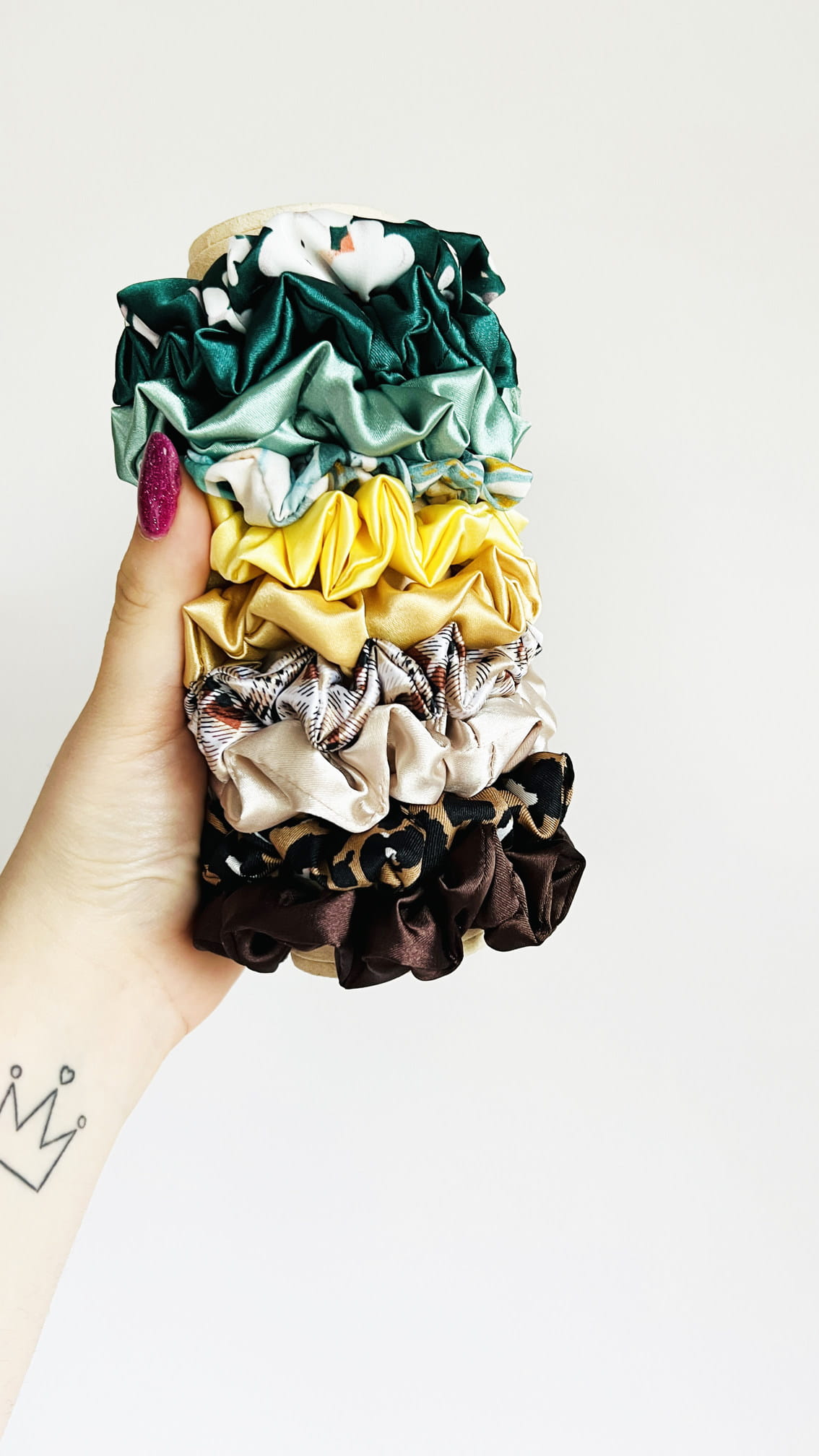 Mini gumkę do włosów scrunchie uszyłam własnoręcznie z wyjątkowo delikatnej satyny syntetycznej. Moje gumki nie szarpią, nie łamią i nie wyrywają włosów, jednocześnie pozwalając Ci na utrzymanie wybranej fryzury w ładzie. Pięknie prezentują się zarówno na włosach, jak i nadgarstku #potwierdzoneinfo