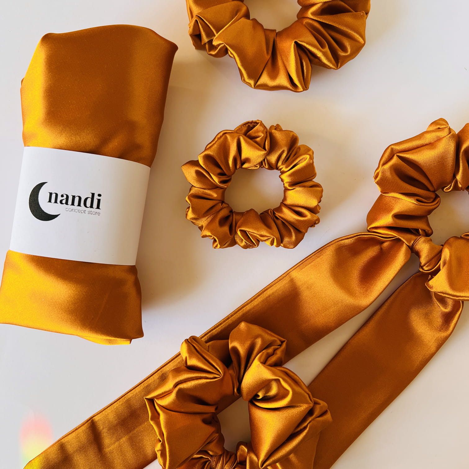 Satynowa gumka do włosów scrunchie MINI Miodowa