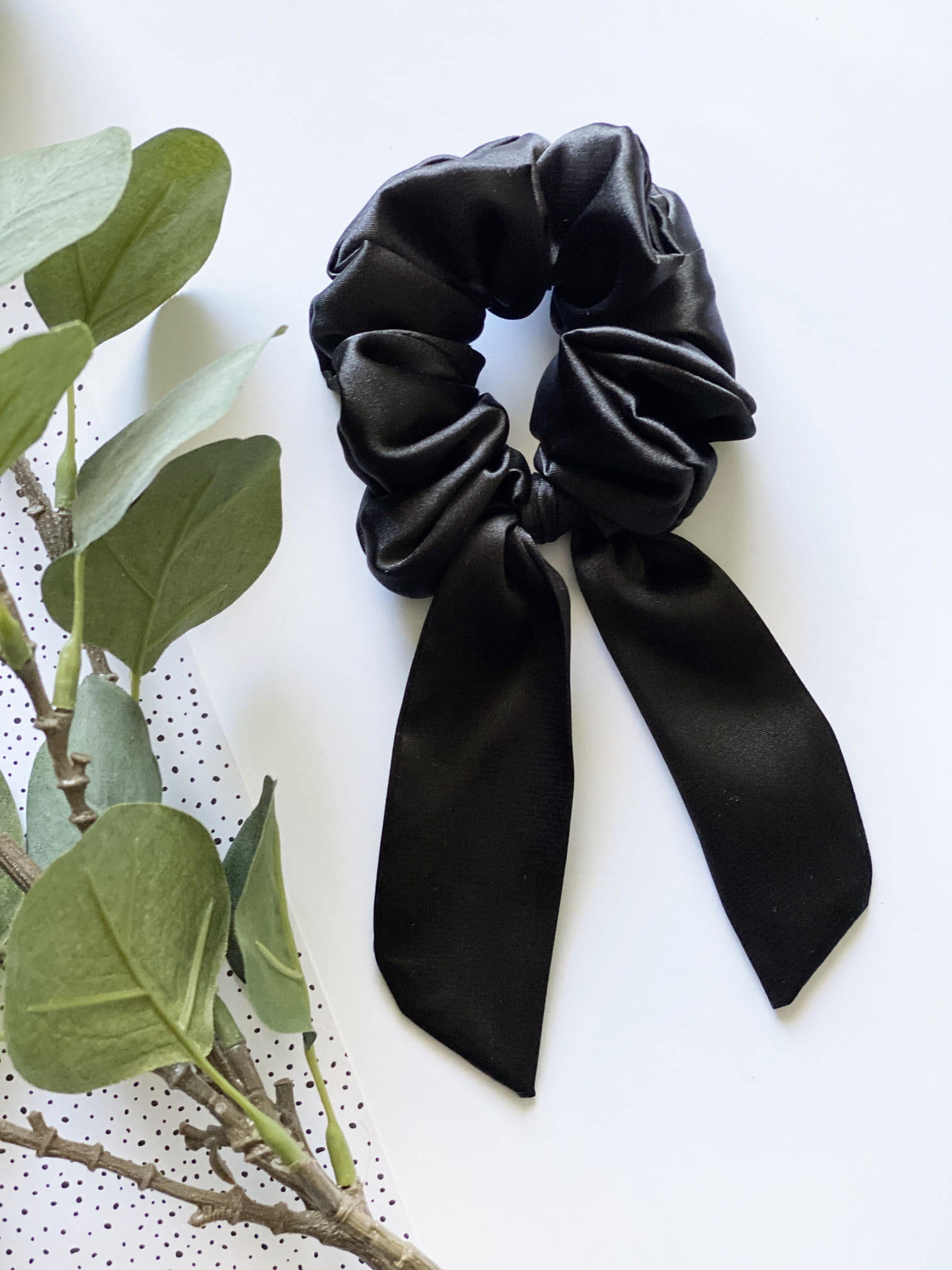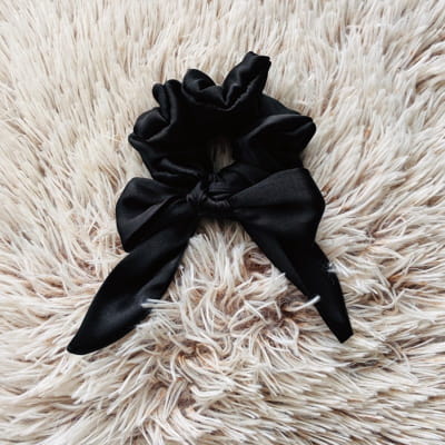 Satynowa gumka do włosów scrunchie MIDI Czarna