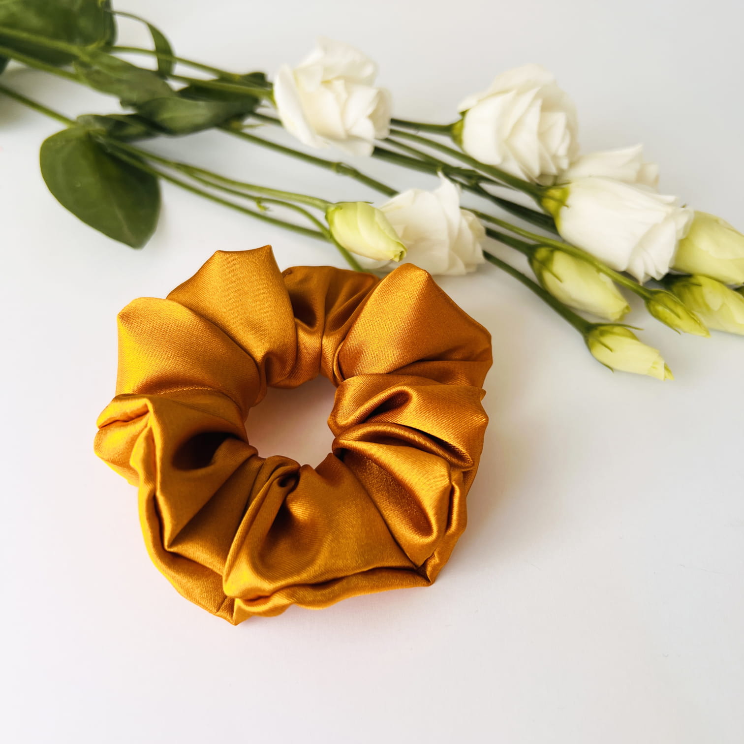 Satynowa gumka do włosów scrunchie MIDI Miodowa