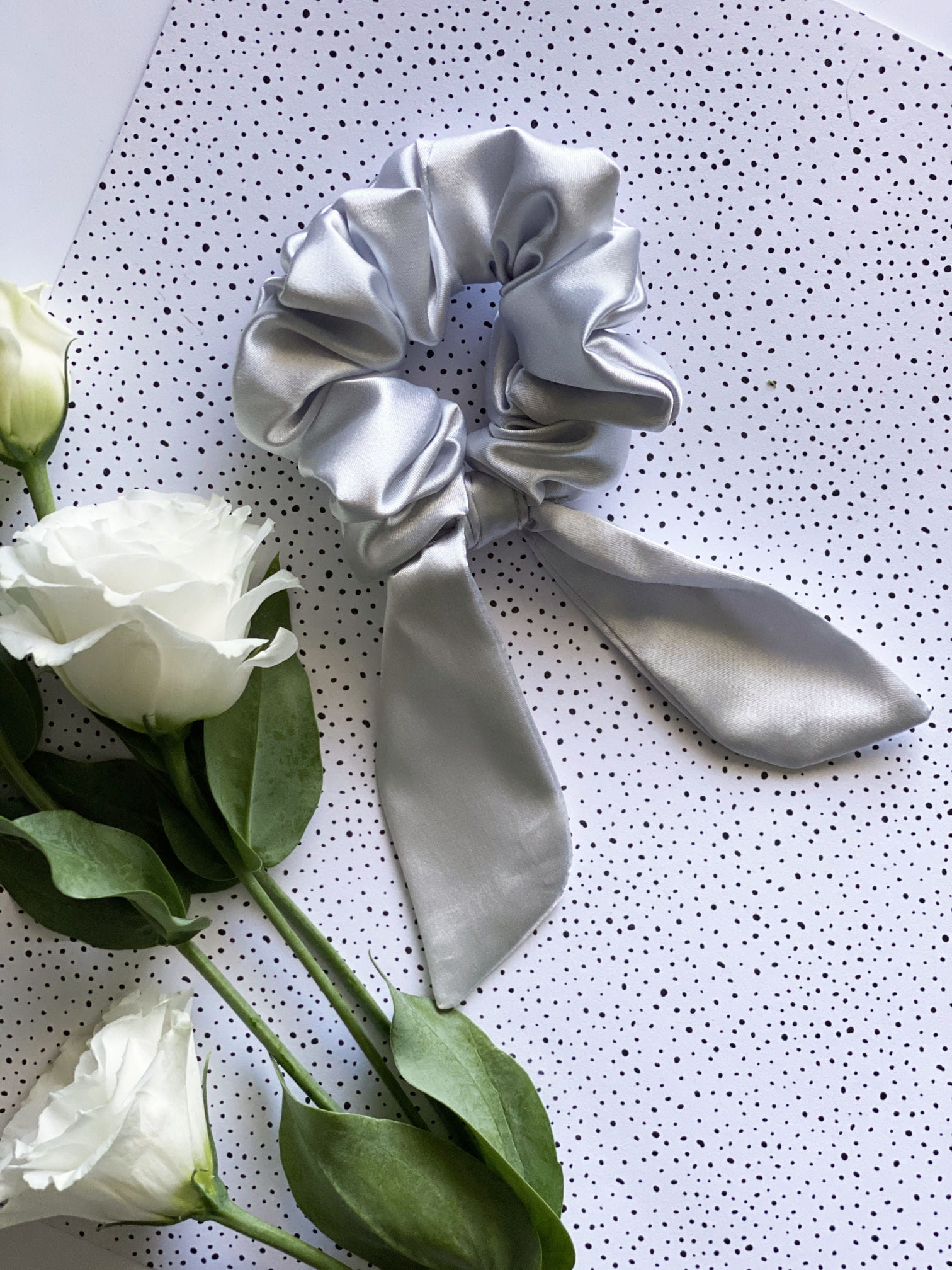Satynowa gumka do włosów scrunchie MIDI Szara