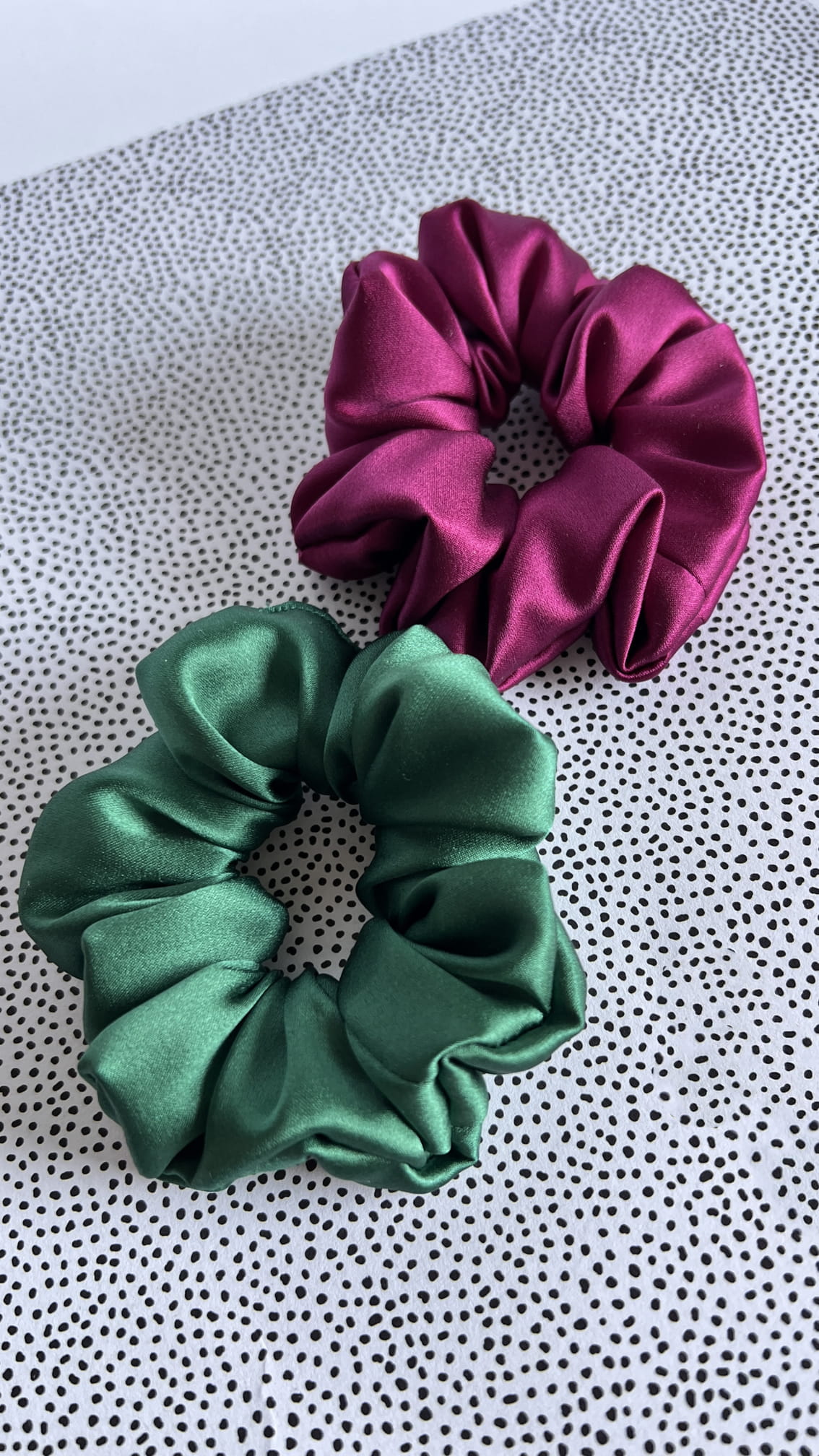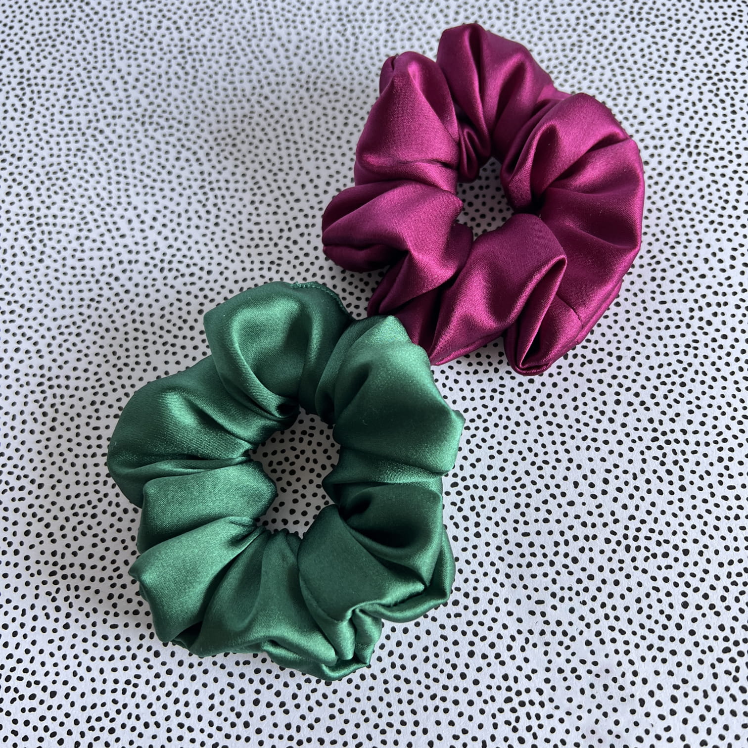 Tę gumkę do włosów scrunchie uszyłam własnoręcznie z wyjątkowo delikatnej satyny jedwabnej. Moje gumki nie szarpią, nie łamią i nie wyrywają włosów, jednocześnie pozwalając Ci na utrzymanie wybranej fryzury w ładzie. Pięknie prezentują się zarówno na włosach, jak i nadgarstku!