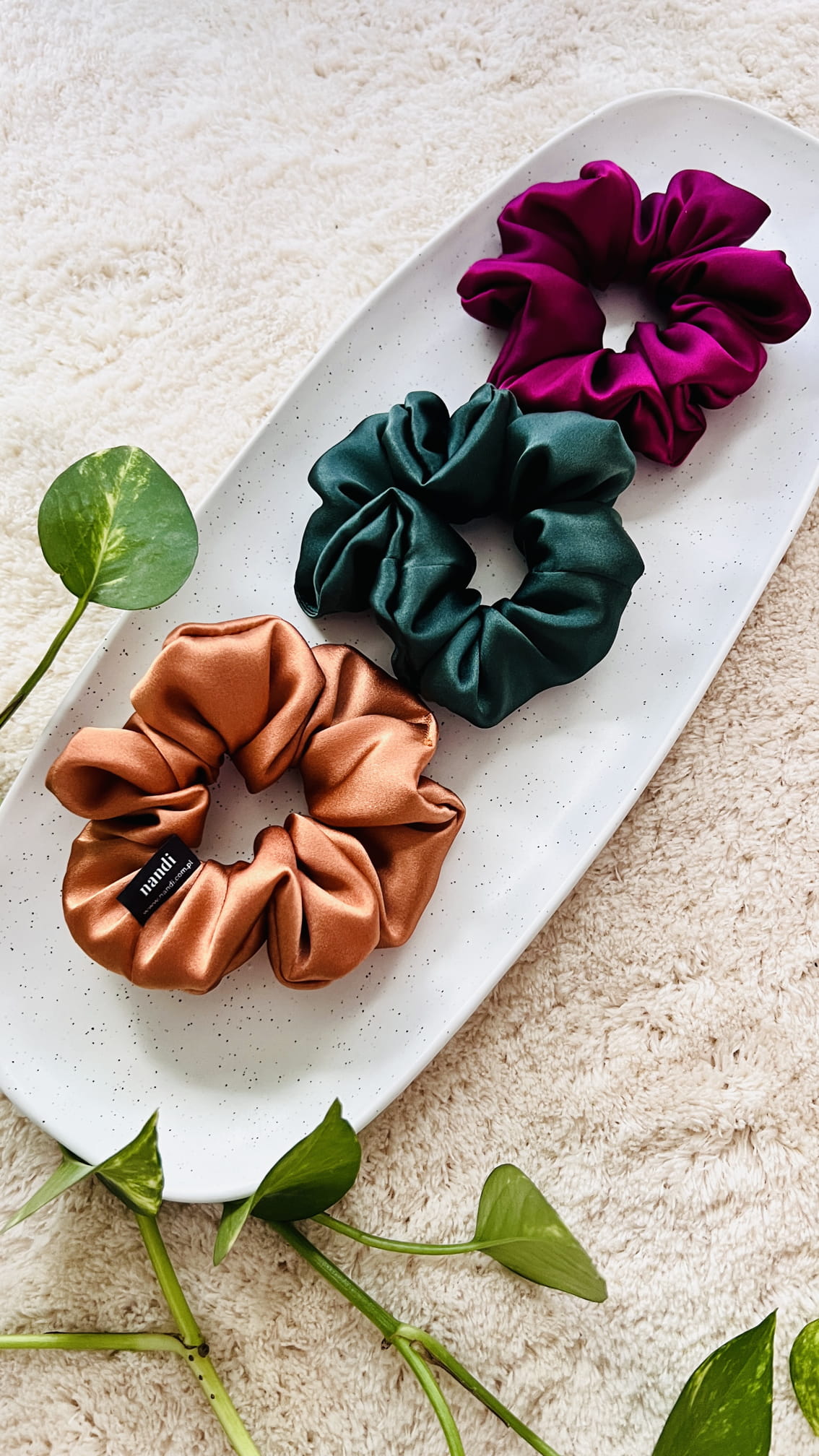 Proponowaną gumkę do włosów scrunchie uszyłam własnoręcznie z wyjątkowo delikatnej satyny jedwabnej. Moje gumki nie szarpią, nie łamią i nie wyrywają włosów, jednocześnie pozwalając Ci na utrzymanie wybranej fryzury w ładzie. Pięknie prezentują się zarówno na włosach, jak i nadgarstku #potwierdzoneinfo