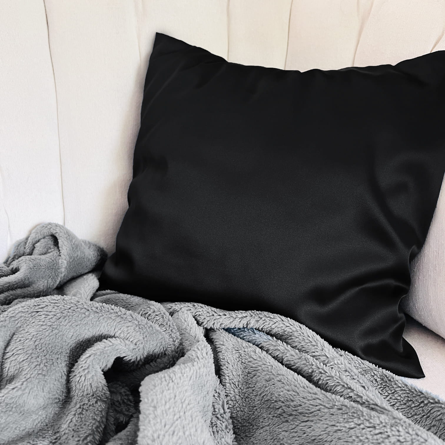Poszewka na poduszkę z jedwabnej satyny Czarna