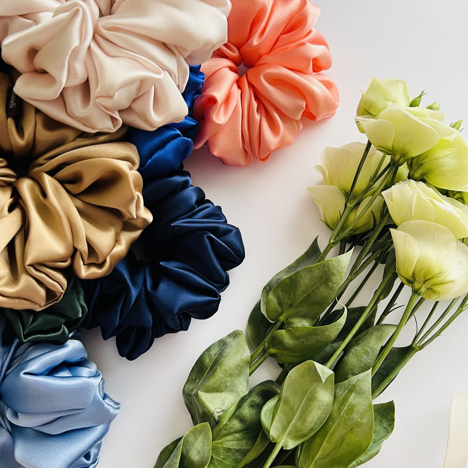 Gumka scrunchie XXL z satyny jedwabnej - Handmade