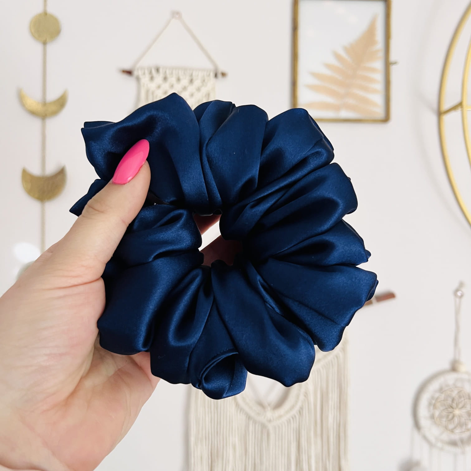 Jedwabna gumka do włosów scrunchie XXL Granat