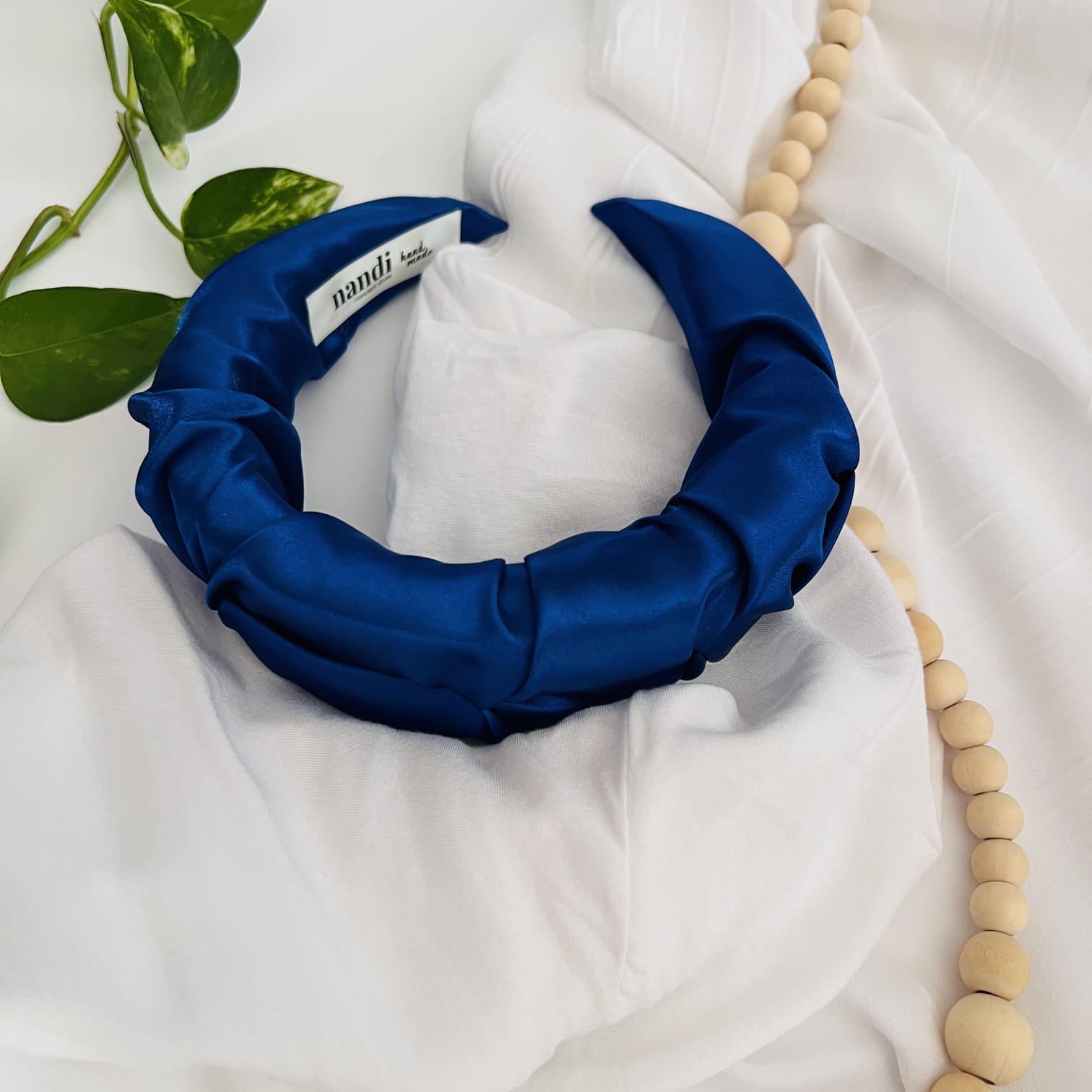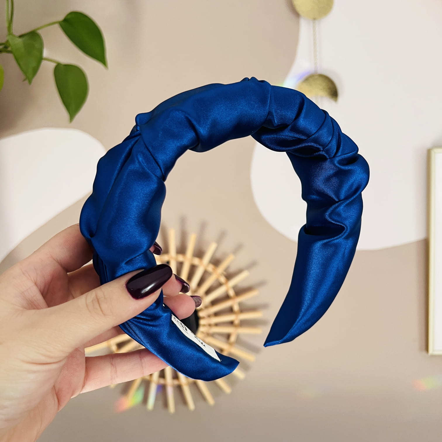 Satynowa opaska na formie Sztywna Marszczona Kobaltowa