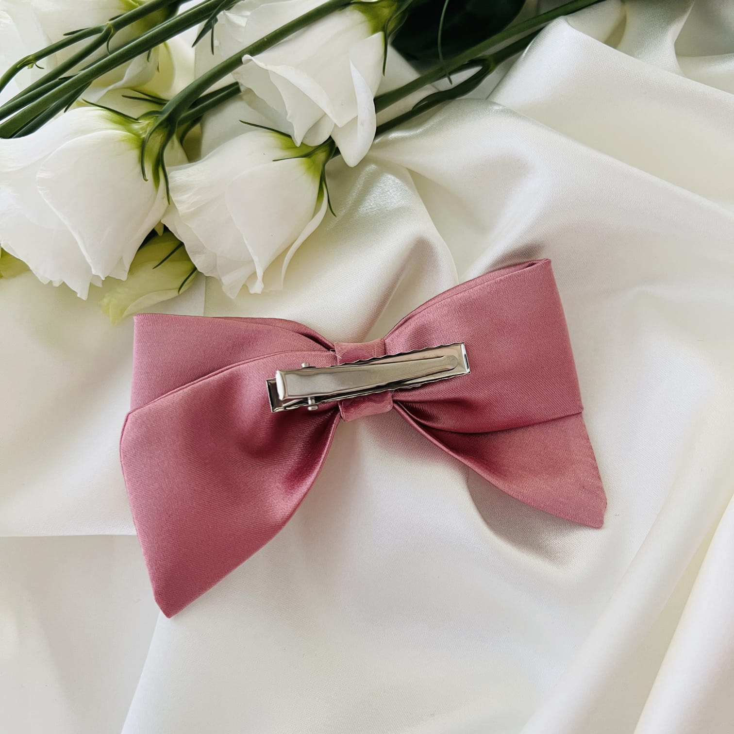 Mała kokarda do włosów Na spince Pudrowy róż