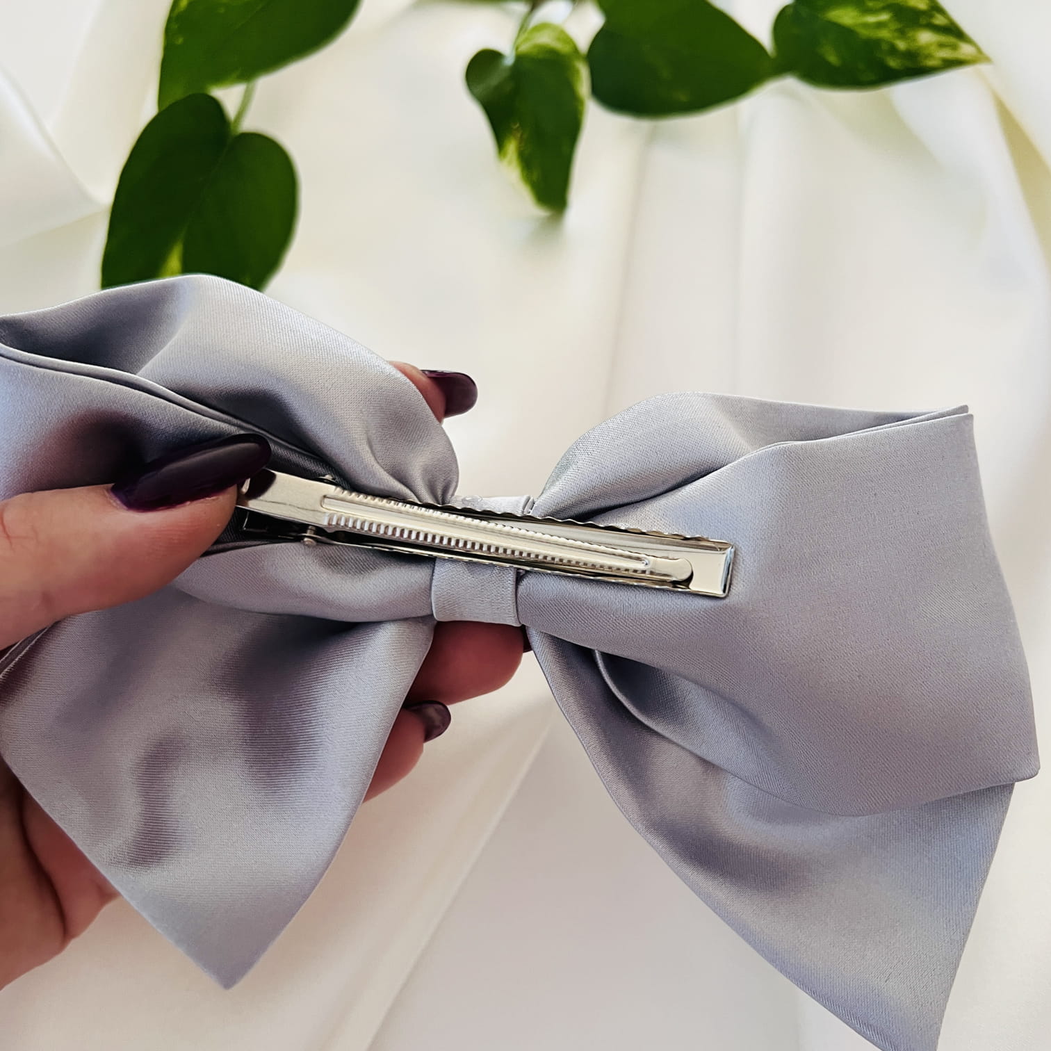 Duża kokarda do włosów Na spince Szara