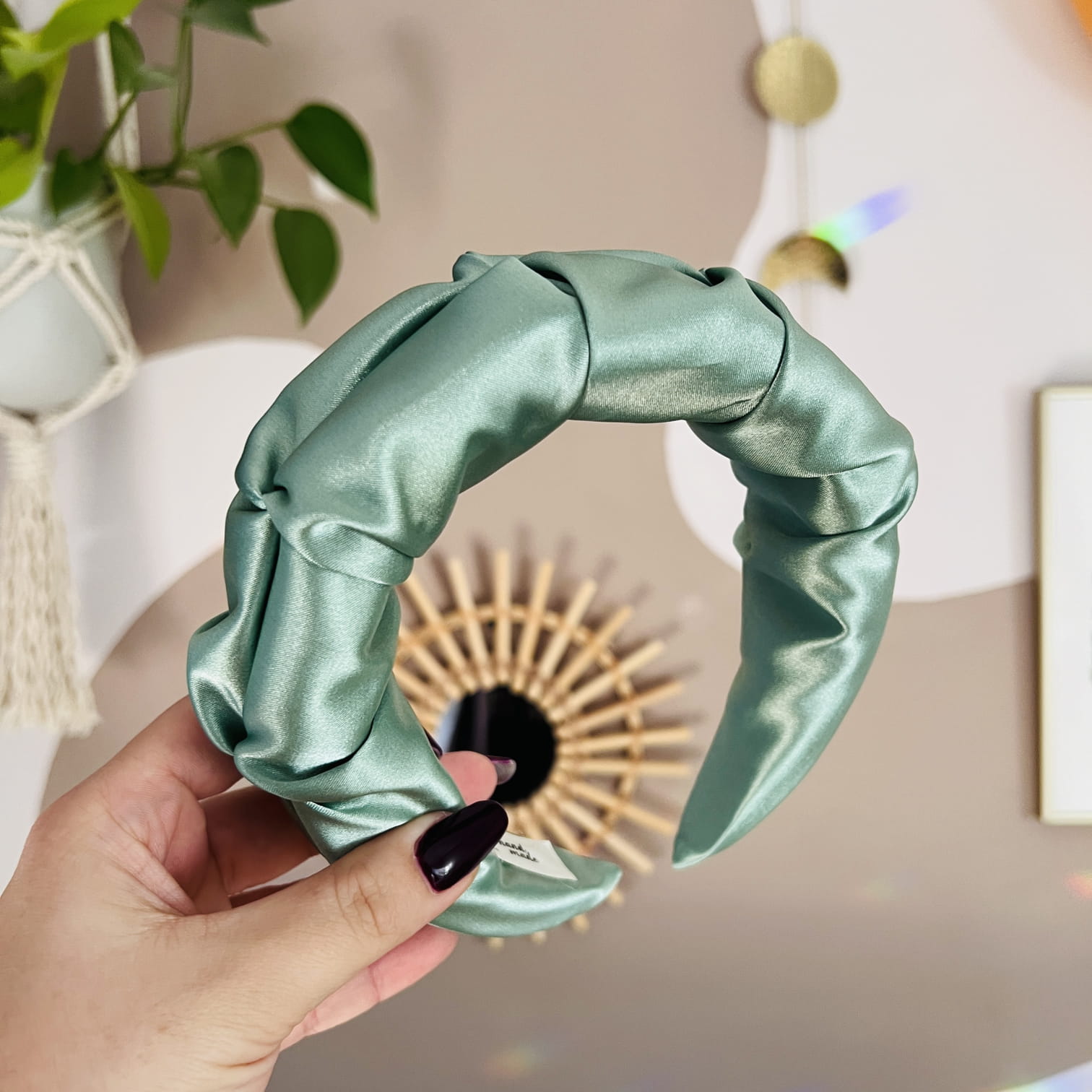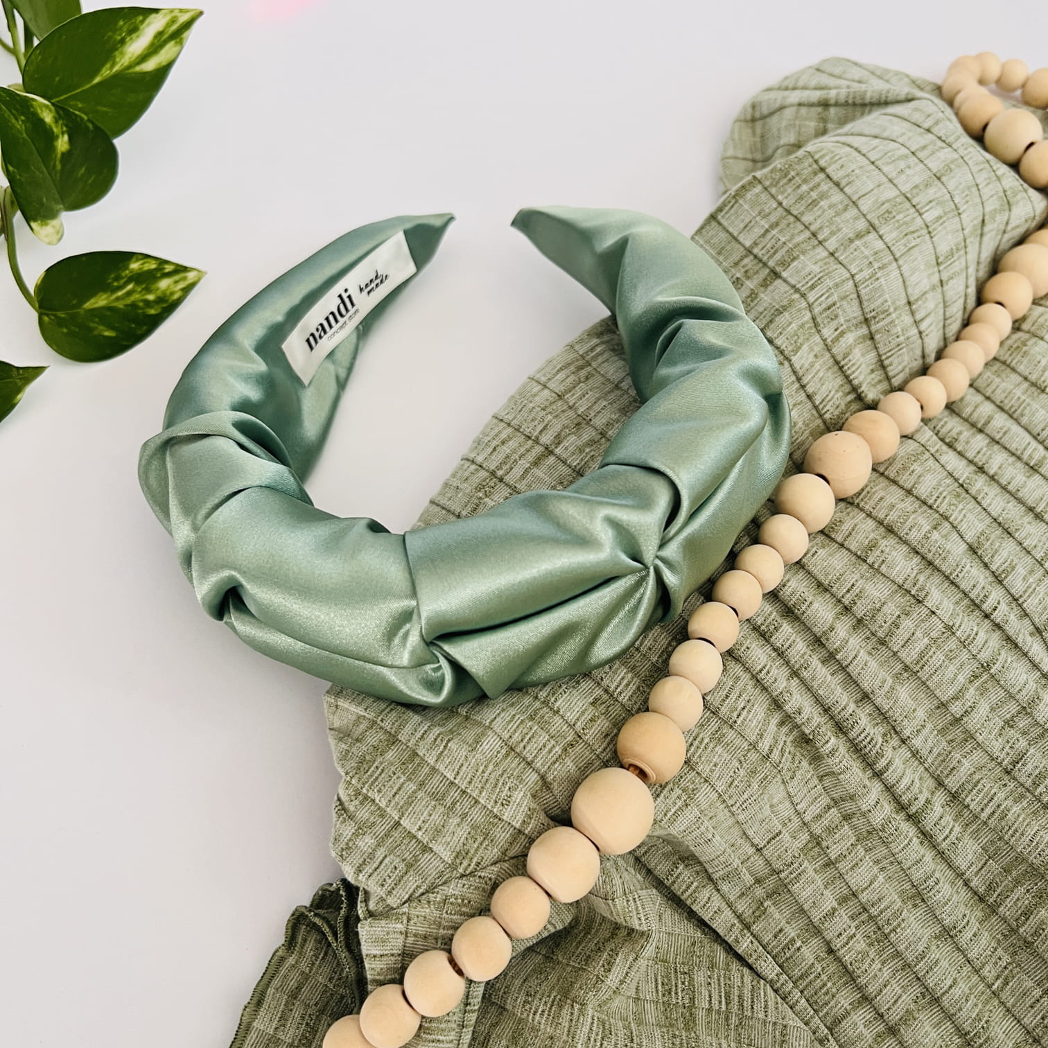Satynowa opaska na formie Sztywna Marszczona Szałwia