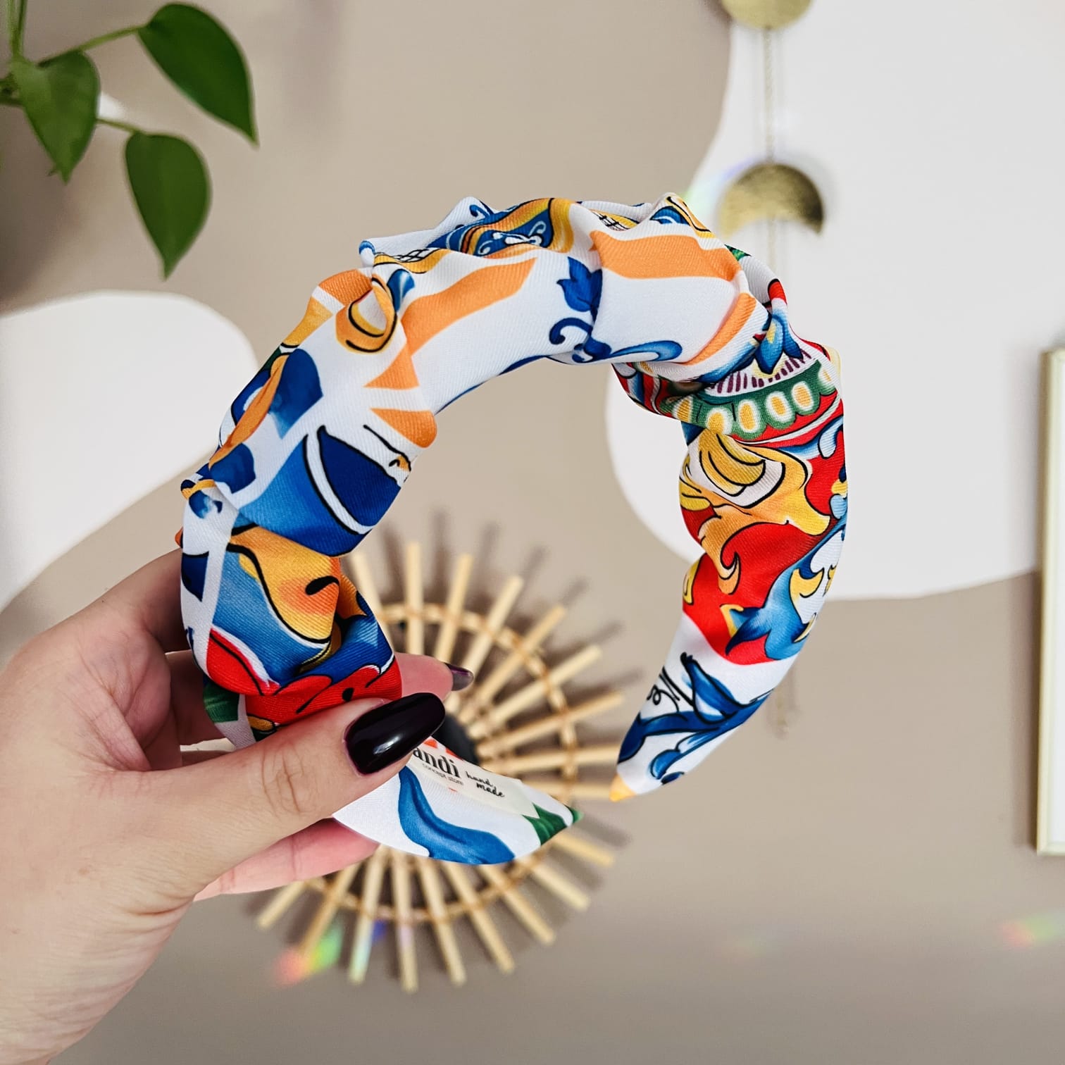 W środku kryje się miękka pianka, która sprawia, że opaska jest lekka, elastyczna i ma piękny, pełny kształt – nie jest płaska, lecz delikatnie uniesiona, co dodaje jej objętości i wyjątkowego charakteru. Jest praktycznie niewyczuwalna na głowie, nie uciska i nie powoduje bólu, a jednocześnie doskonale trzyma się na miejscu, nie zsuwając się podczas noszenia.