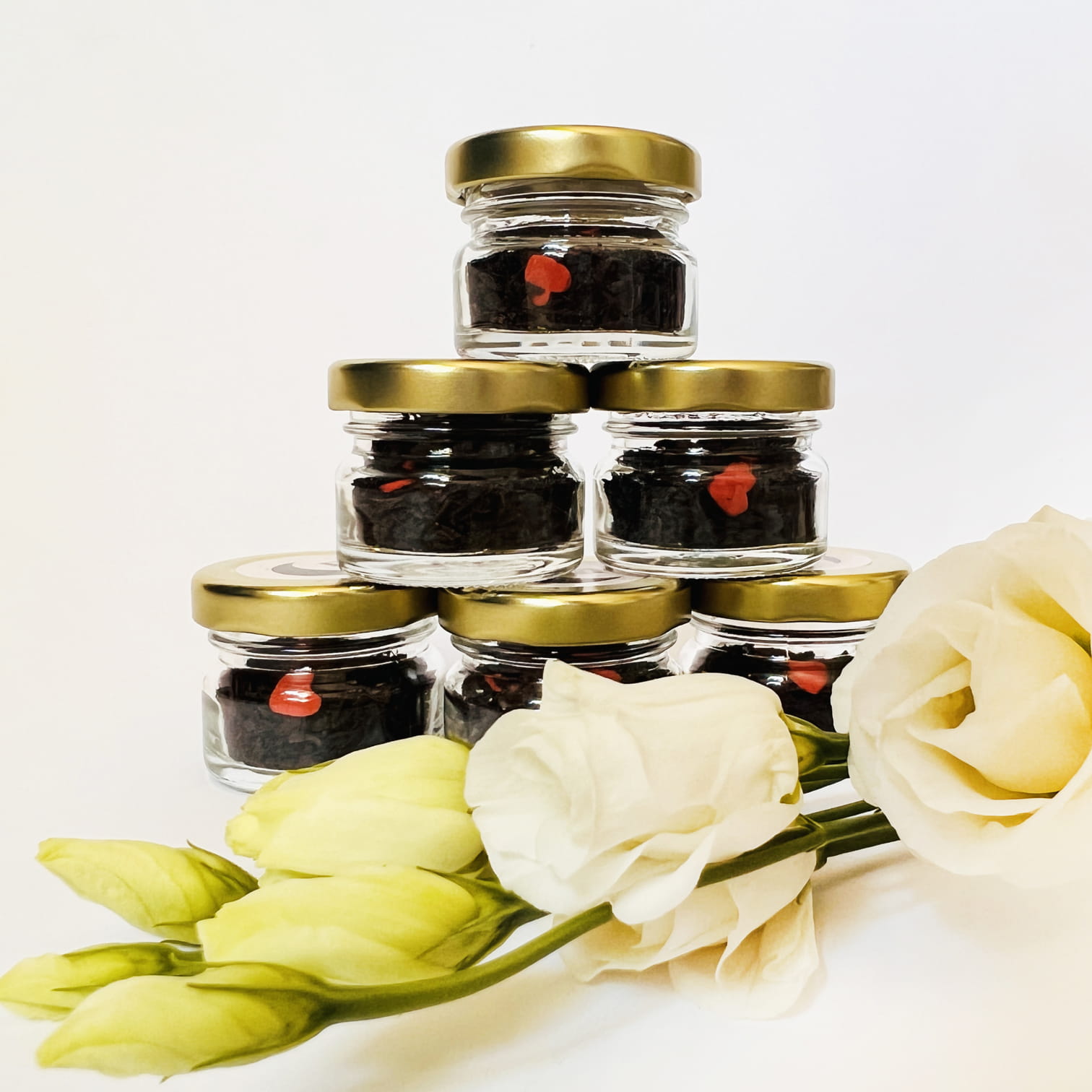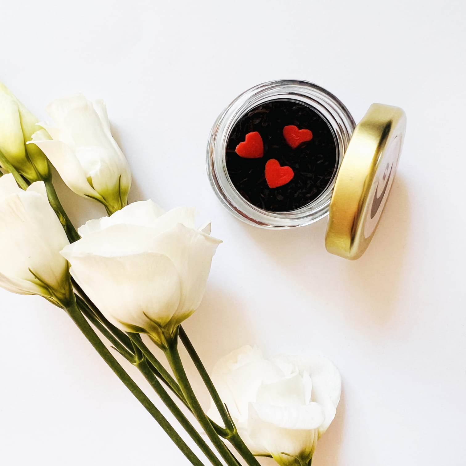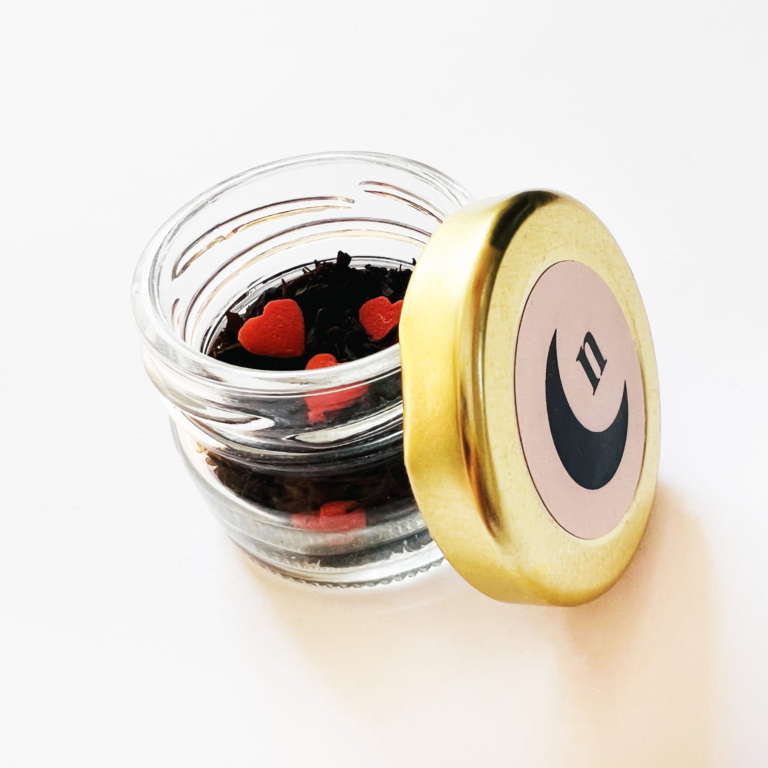 W mini słoiczku znajduje się czarna cejlońska herbata z dodatkiem cukrowych serduszek, które rozpuszczają się w gorącej wodzie osładzając ją. Zawartość słoiczka starcza na wykonanie jednej filiżanki herbaty.