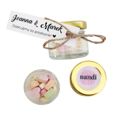 Jedna sztuka produktu zawiera: Słoiczek o pojemności 15g z cukierkami oraz dedykację.