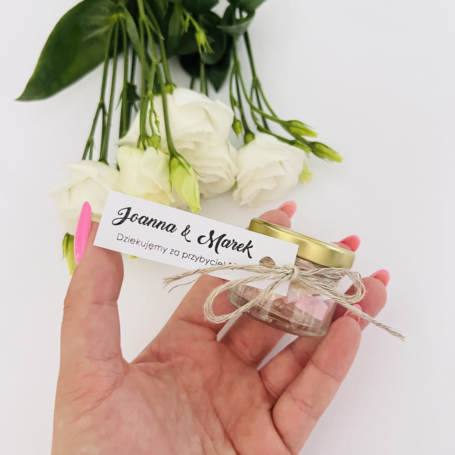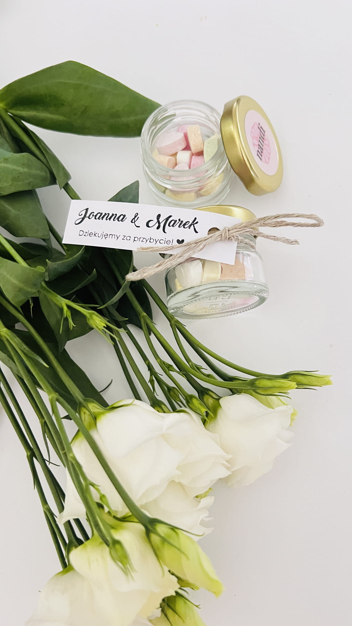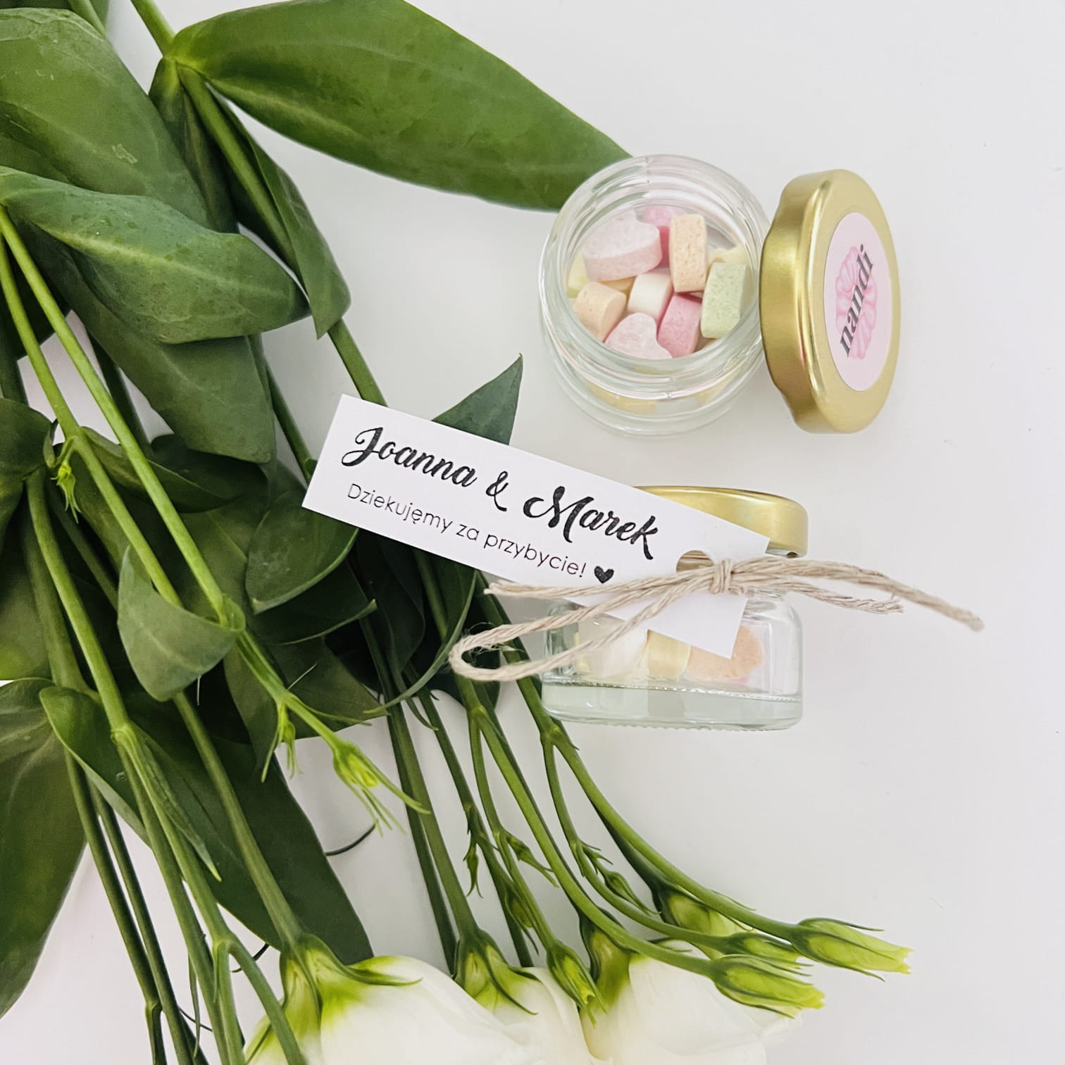 Podziękowania Ślubne dla gości weselnych Cukierki w słoiku