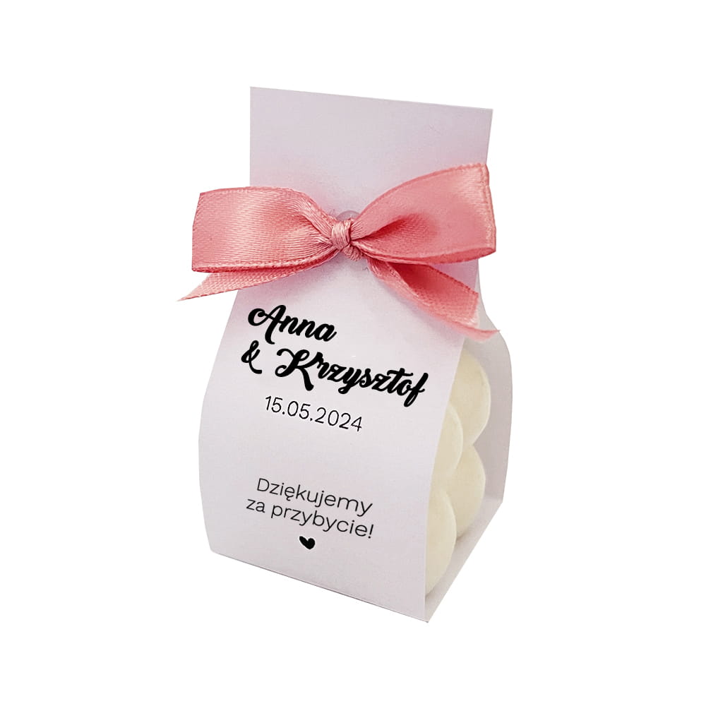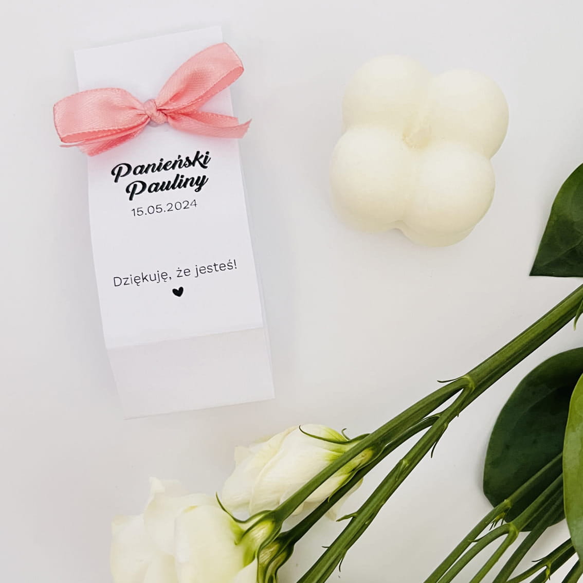 - bilecik z kokardką i napisem "Dziękuję!" do każdej świecy,