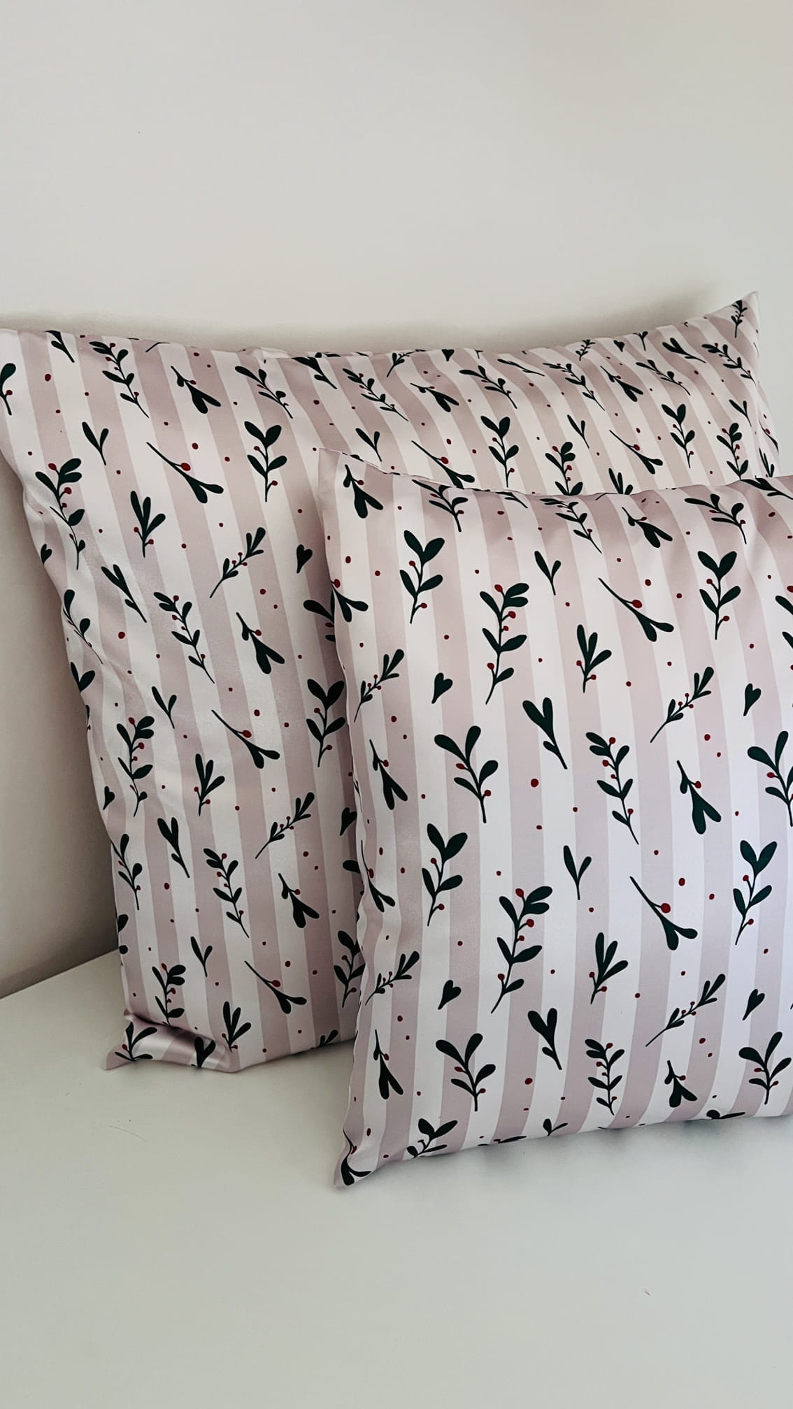 Jej autorski wzór przedstawia delikatne zimowe gałązki na kremowym, pasiastym tle. Wzór kojarzy się ze świątecznym klimatem, ale w nowoczesnym i stonowanym wydaniu - łączy klasyczne motywy roślinne z elegancką prostotą — idealny dla osób, które cenią minimalizm z nutą świątecznego ciepła. Ten wzór dostaniesz tylko w Nandi!