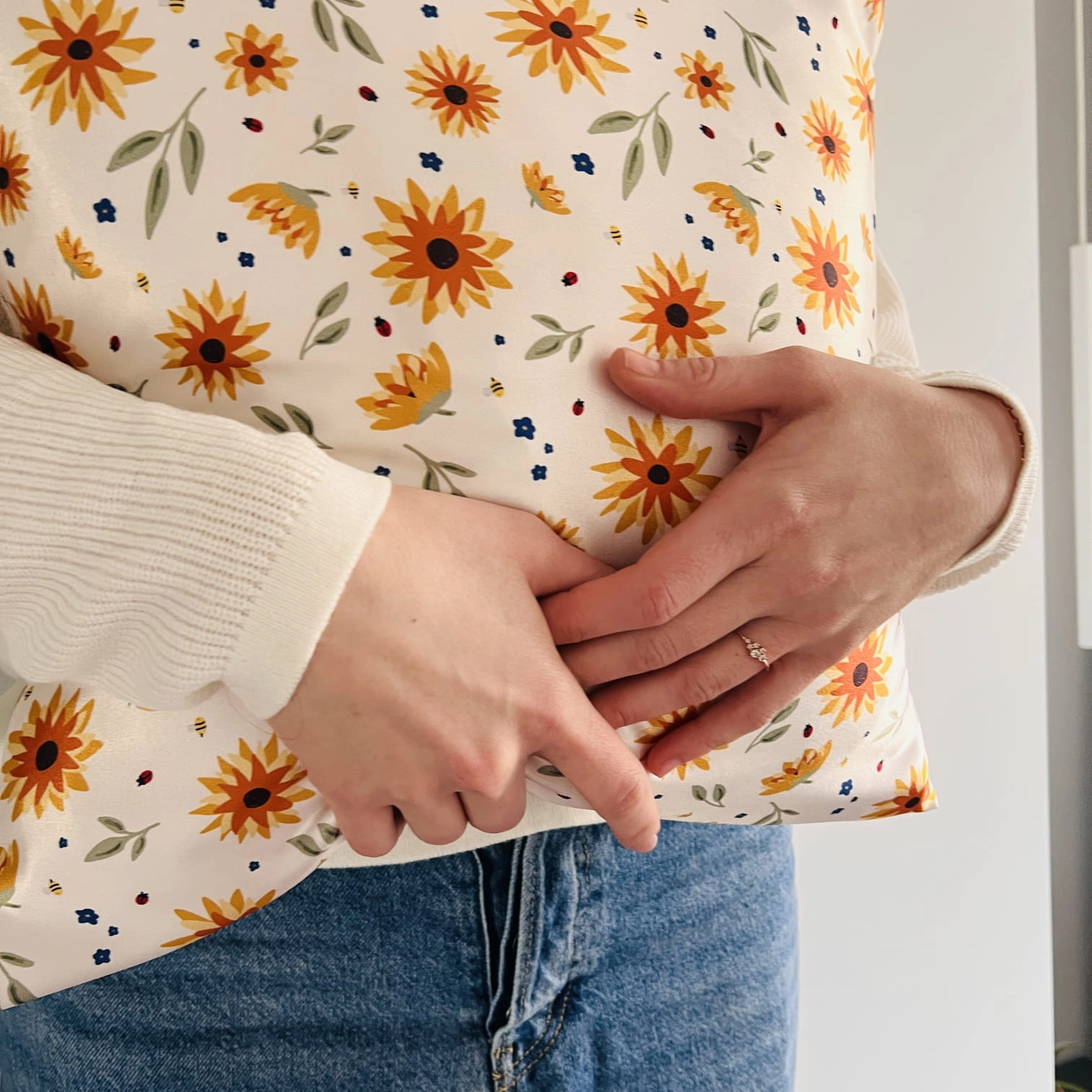 Radosny wzór z dużymi, złocistymi kwiatami na jasnym tle, przywodzący na myśl letnią łąkę skąpaną w słońcu. Ma w sobie energię, ciepło i lekkość – jak wakacyjny dzień spędzony na świeżym powietrzu. Ten wzór dostaniesz tylko w Nandi!
