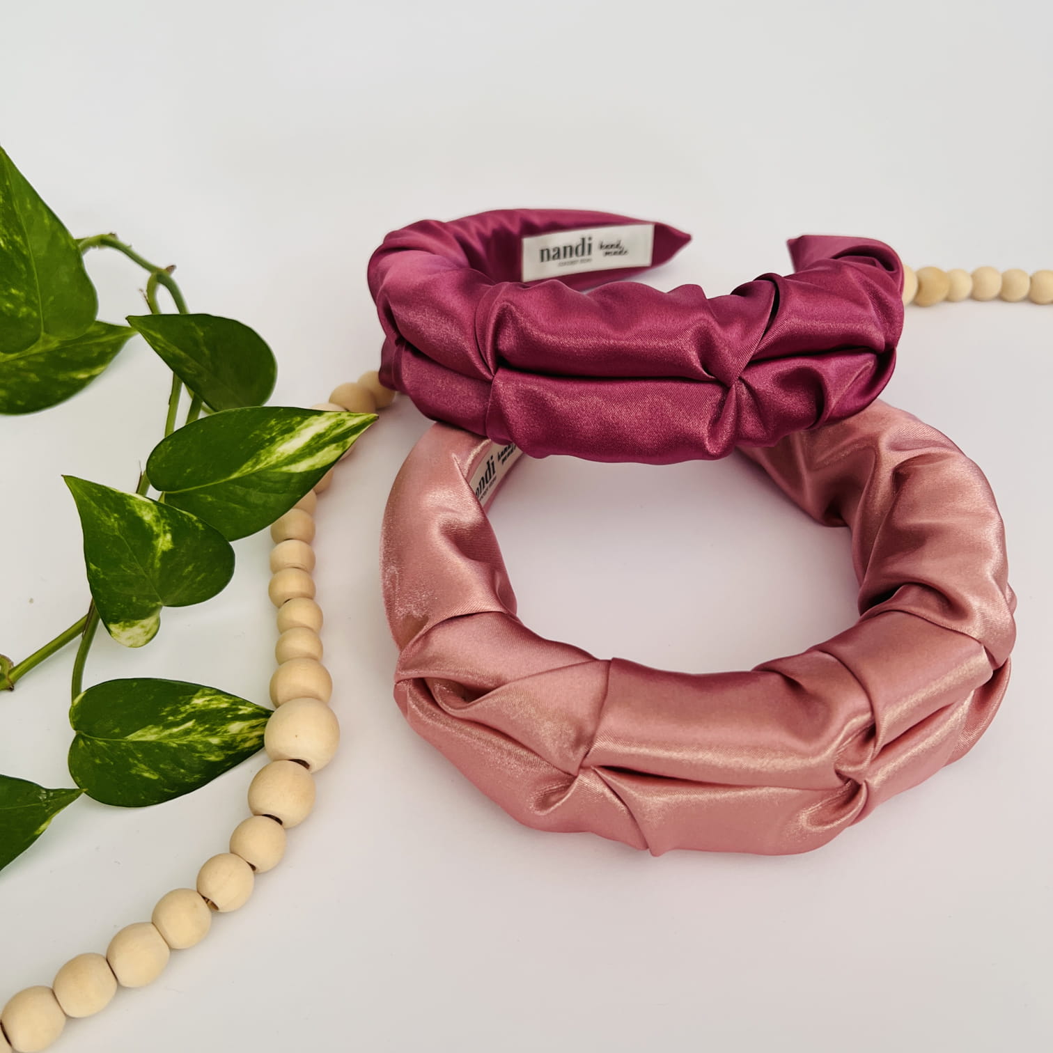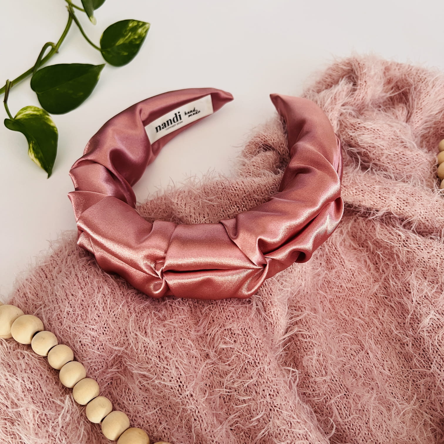 Satynowa opaska na formie Sztywna Marszczona Pudrowy róż