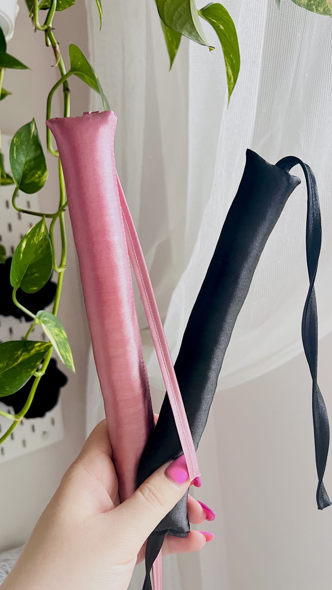 Satynowe papiloty do kręcenia loków to idealna alternatywa dla wszystkich tych, którym włosy bardzo niszczą się przy użyciu tradycyjnych lokówek czy suszarek. Ze względu na brak czynnika termicznego (ciepła) włosy są w 100% bezpieczne.