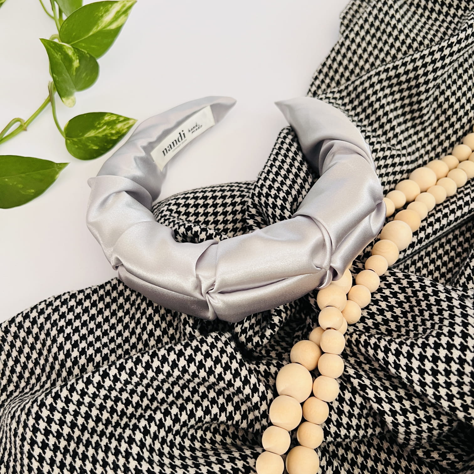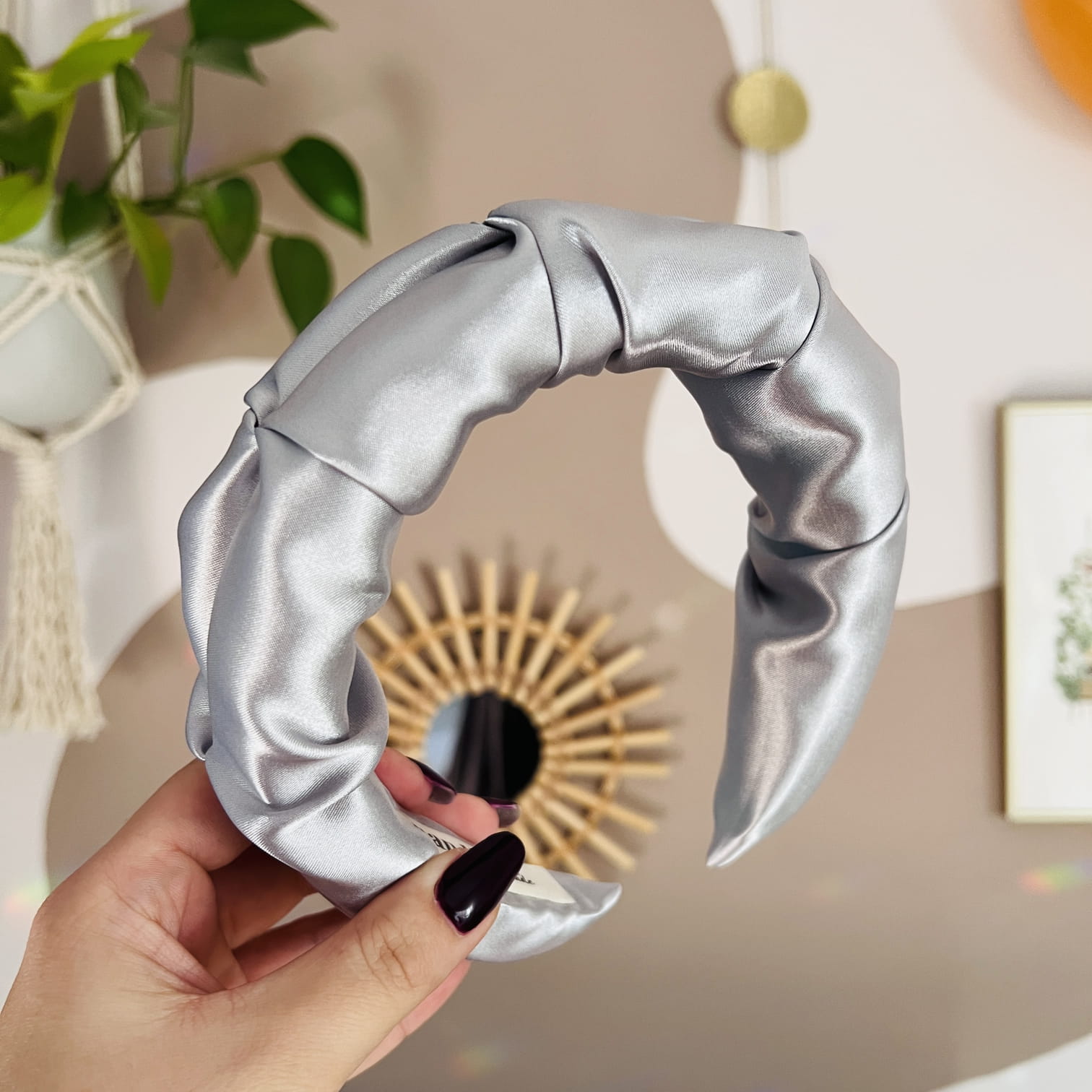 W środku kryje się miękka pianka, która sprawia, że opaska jest lekka, elastyczna i ma piękny, pełny kształt – nie jest płaska, lecz delikatnie uniesiona, co dodaje jej objętości i wyjątkowego charakteru. Jest praktycznie niewyczuwalna na głowie, nie uciska i nie powoduje bólu, a jednocześnie doskonale trzyma się na miejscu, nie zsuwając się podczas noszenia.