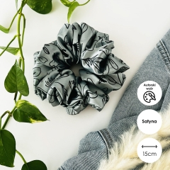 Wyjątkowa gumka scrunchie w rozmiarze XXL (średnica 15 cm) wykonana ręcznie z miękkiej, delikatnej satyny. Ta gumka to idealny wybór zarówno na co dzień, jak i na specjalne okazje. Gruba guma wewnątrz utrzyma każde włosy w ryzach, a jej puszysta struktura sprawi, że każda fryzura będzie się pięknie z nią prezentować. Scrunchie XXL to idealne rozwiązanie, które pozwoli szybko i łatwo stworzyć efektowne upięcie na każdą okazję. Gwarantowany efekt WOW!