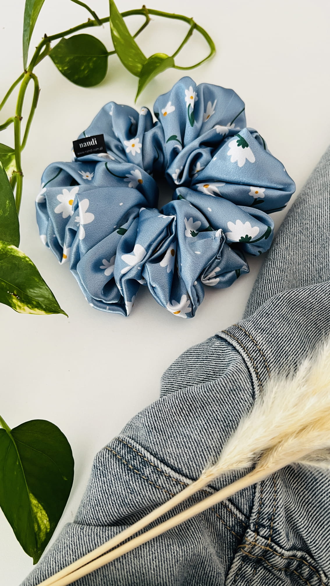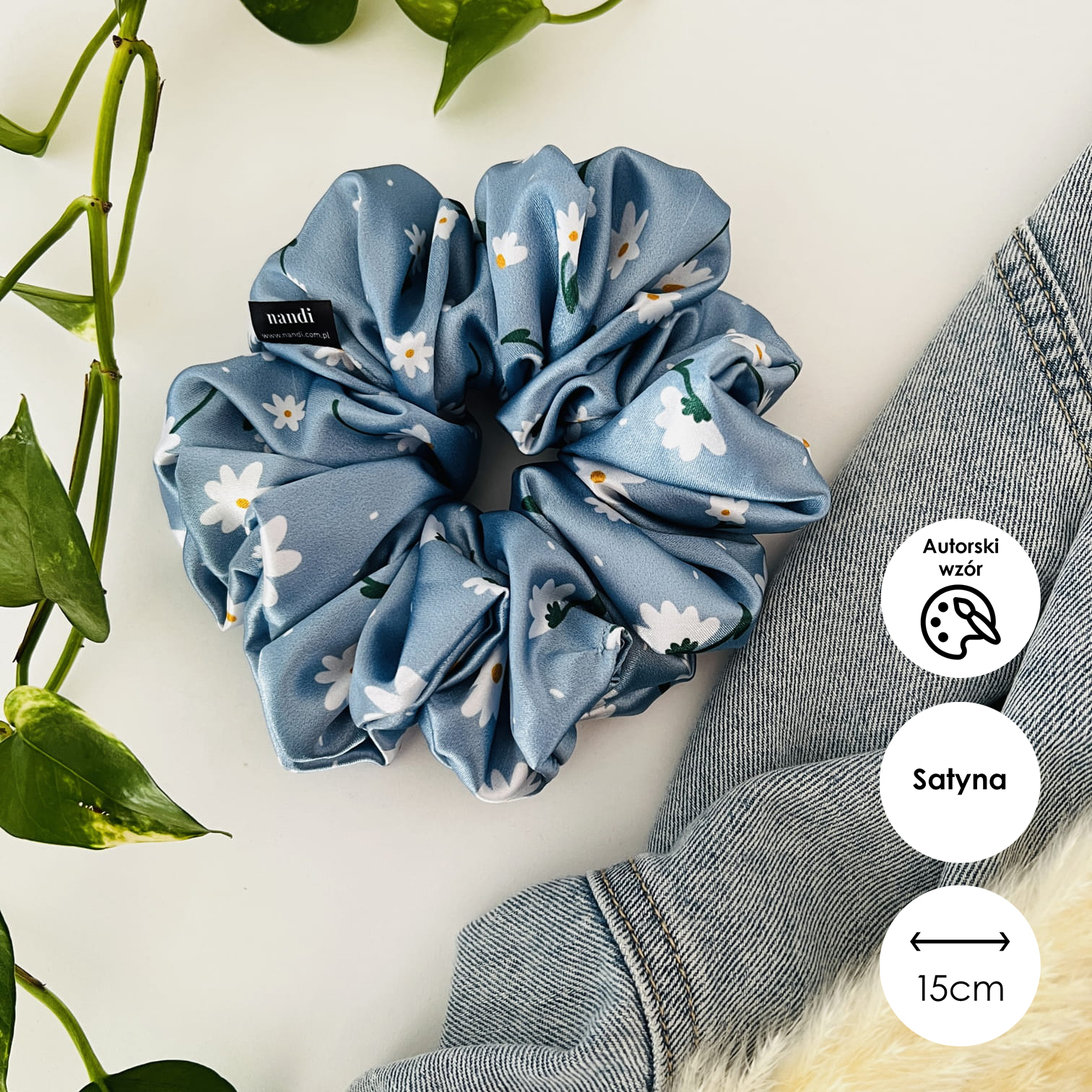 Satynowa gumka do włosów scrunchie XXL Daisy